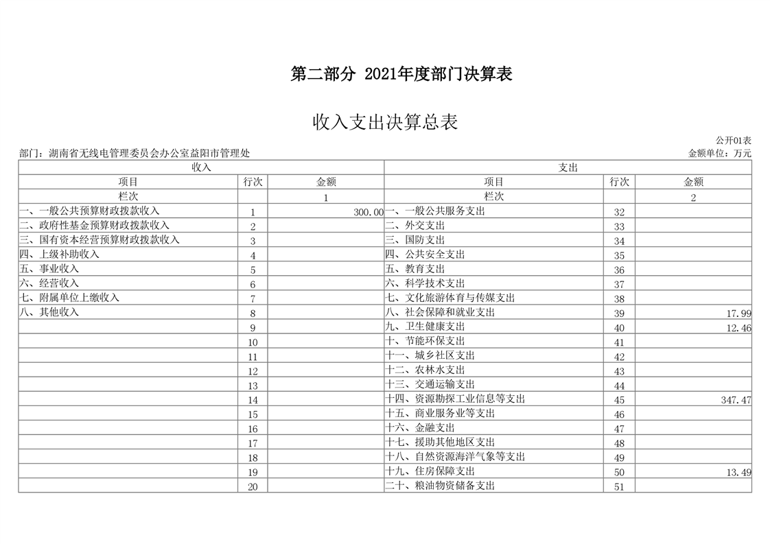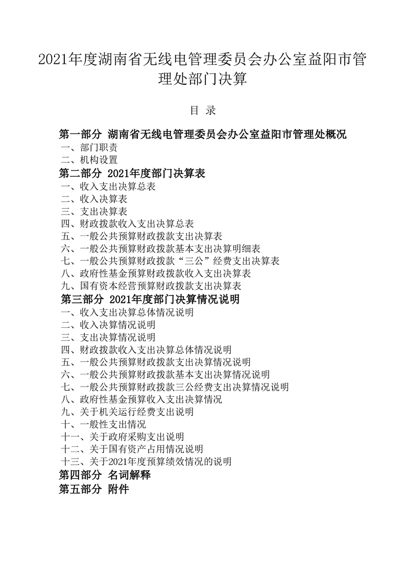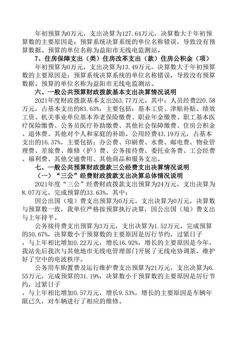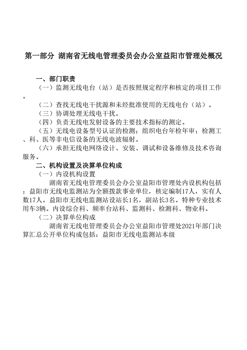 湖南省无线电管理委员会办公室益阳市管理处(益阳市无线电监测站)2021年部门决算公开说明
