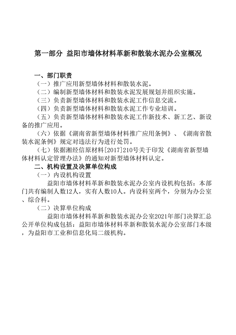 益阳市墙体材料革新和散装水泥办公室2021年部门决算公开说明