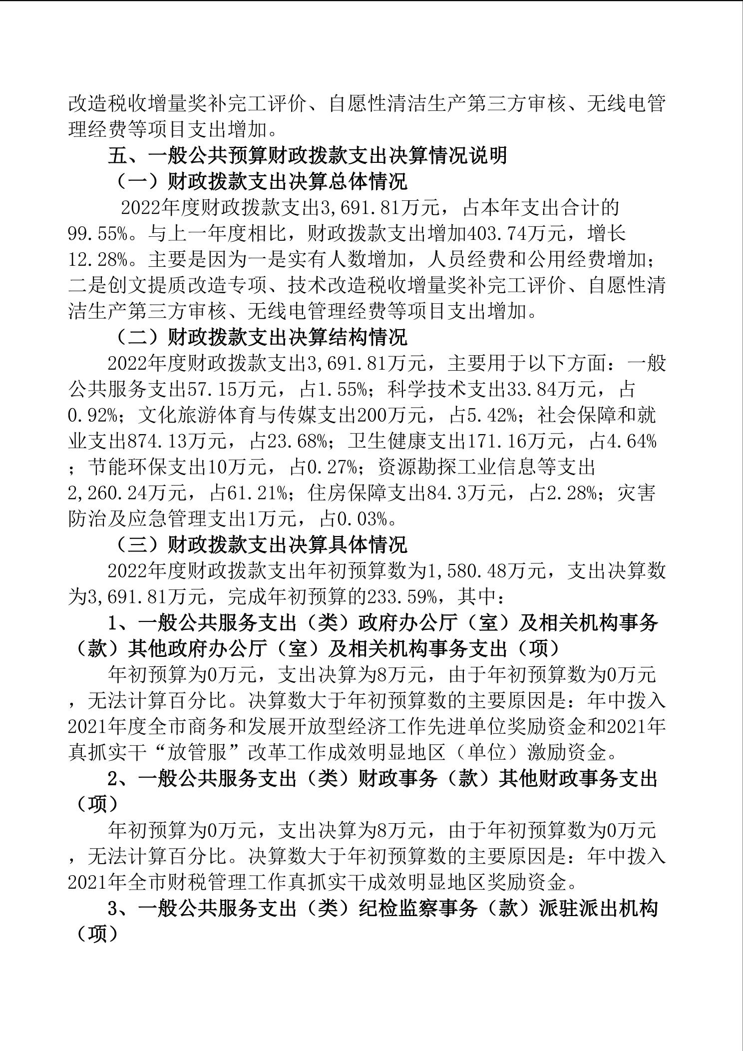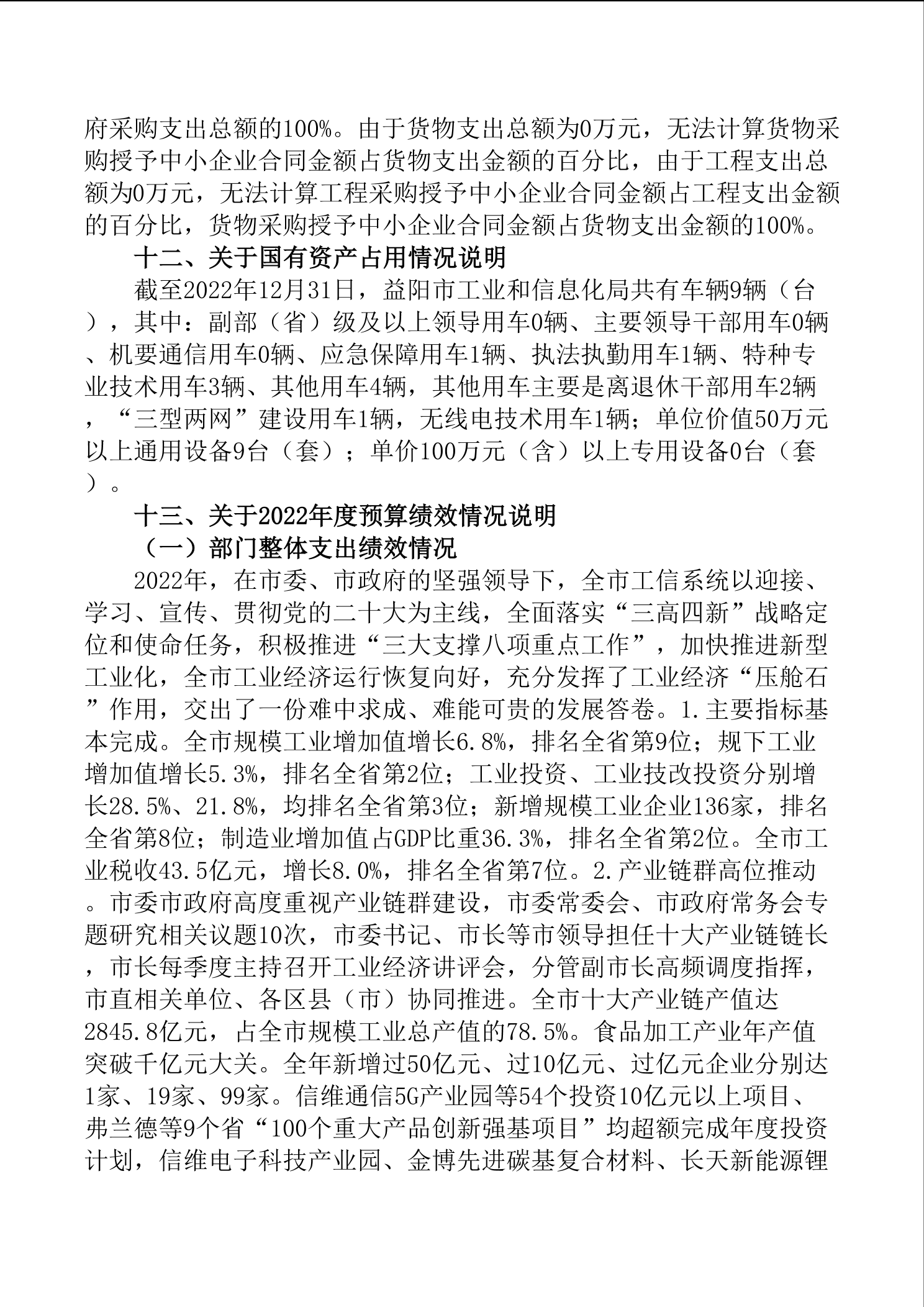 2022年度益阳市工业和信息化局整体支出绩效自评报告.docx