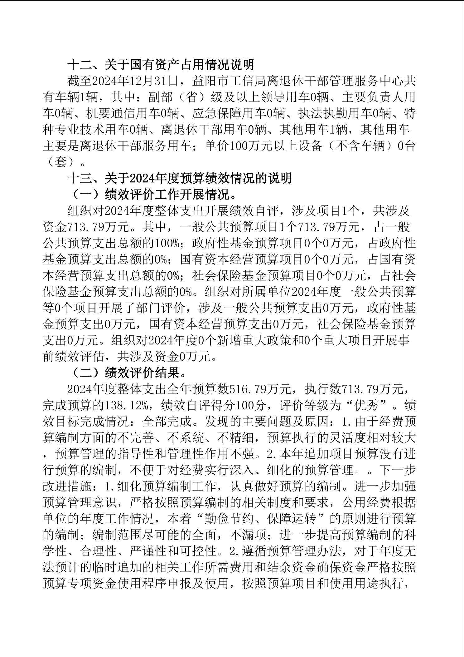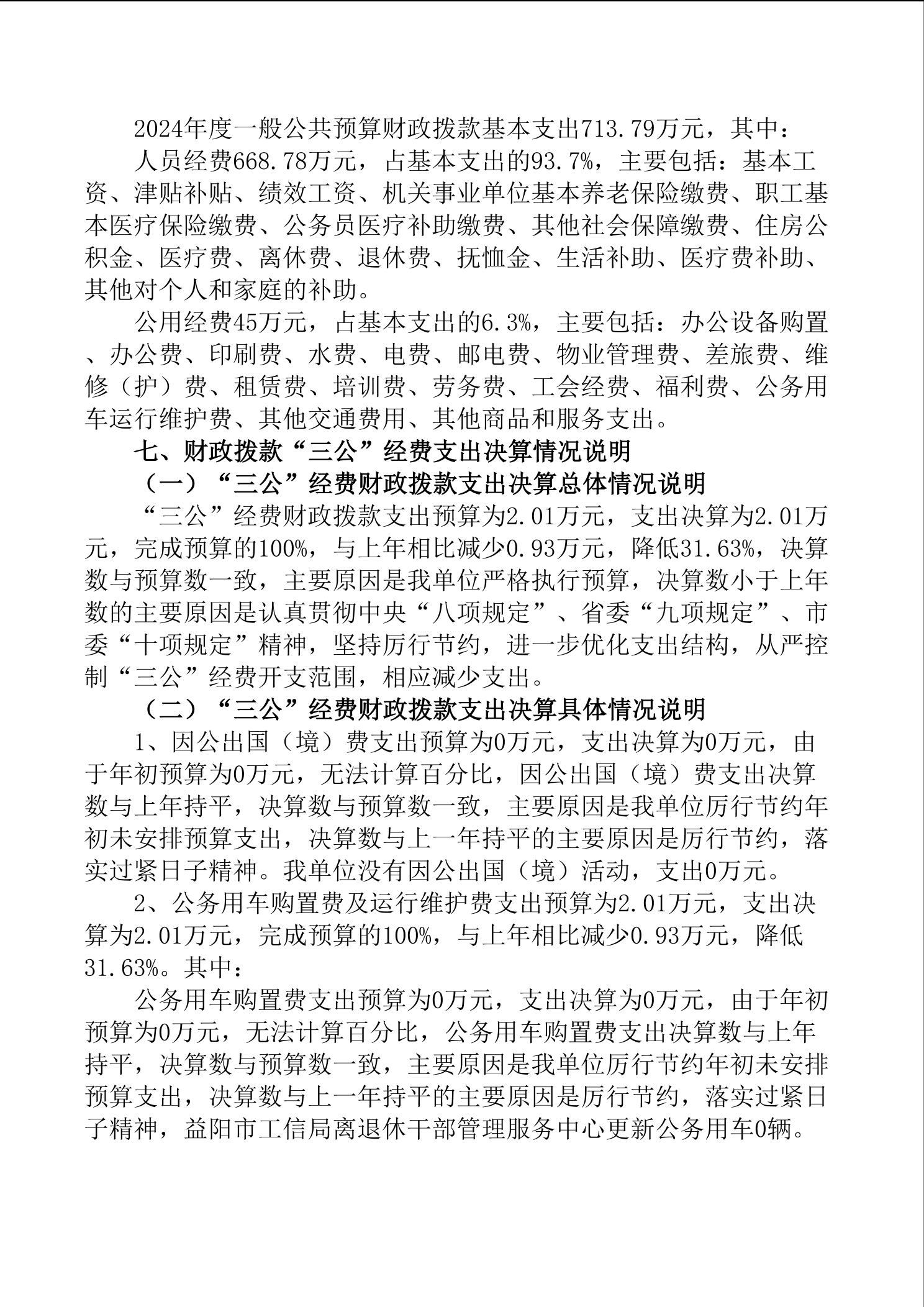 益阳市工业和信息化局离退休干部管理服务中心2024年决算公开说明