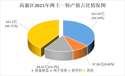 园区“两主一特”(以三一中阳为龙头的装备制造产业,以信维声学为龙头的电子信息产业,以金博股份为龙头的新材料产业)优势主导产业全年产值265.41亿元,增长22.2%,占规模工业总产值的59.29%,其中:装备制造产业产值163.54亿元,增长21.0%;电子信息产业产值37.86亿元,增长1.4%;新材料产业产值64.01亿元,增长43.5%。