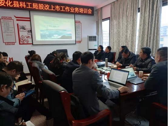 王法为大家讲解了多层次资本市场与县域资本市场建设,系统阐述了多层次资本市场体系的组成部分,针对安化县域经济做出分析,为推进我县经济与资本市场紧密衔接提供理论基础。潘佩针对我县175家规模以上工业企业的质量、规模等做出不同层次的划分,对有潜力进行股改从而上市的企业进行着重讲解,为我县指导相关企业进行股改提供方向。