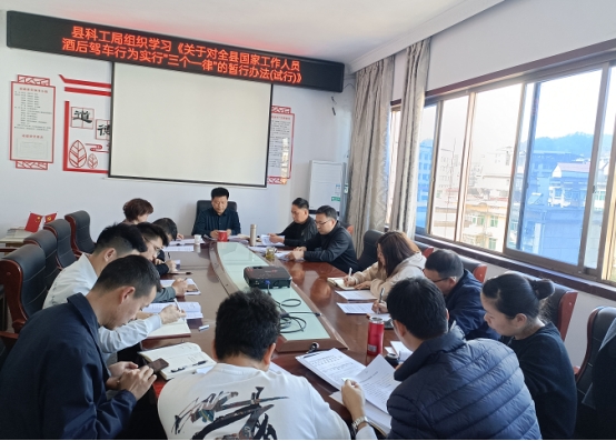 3月11日,安化县科工局组织集中学习《关于对全县国家工作人员酒后驾车行为实行"三个一律"的暂行办法(试行)》,机关全体党员干部参加。