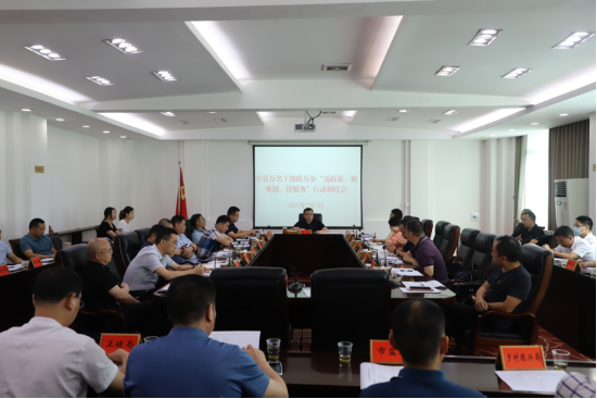 7月7日,桃江县县委书记向荣主持召开会议专题调度全县万名干部联万企“送政策、解难题、优服务”行动,县委副书记、统战部部长冷亮,副县长曾国栋、各县直单位主要负责人参加会议。