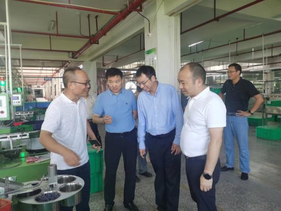 何军一行深入益阳市安兴电子有限公司,参观考察了安兴电子实验基地和生产车间,并在安兴电子公司会议室召开座谈会。