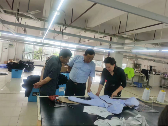 夏兴伟一行现场观摩了鑫达纺织纱线和凯特密欧校服的制作工艺和流程,并与企业负责人就产品质量、市场销售和品牌建设等问题进行了深入交流。