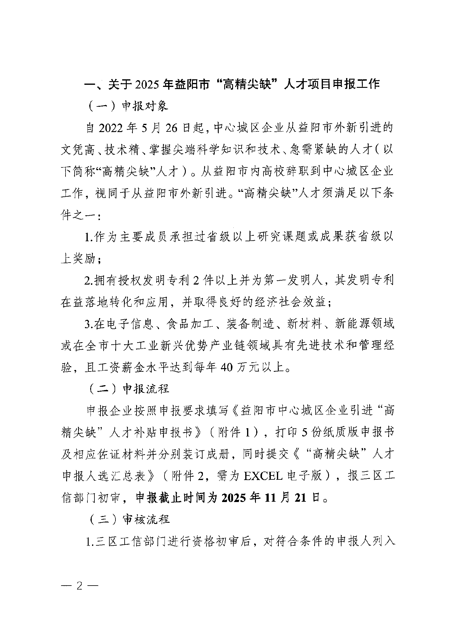 关于开展2025年益阳市“高精尖缺”人才、“突出贡献人才”、“领军人物”项目申报及2023年、2024年“高精尖缺”人才补贴发放复核工作的通知