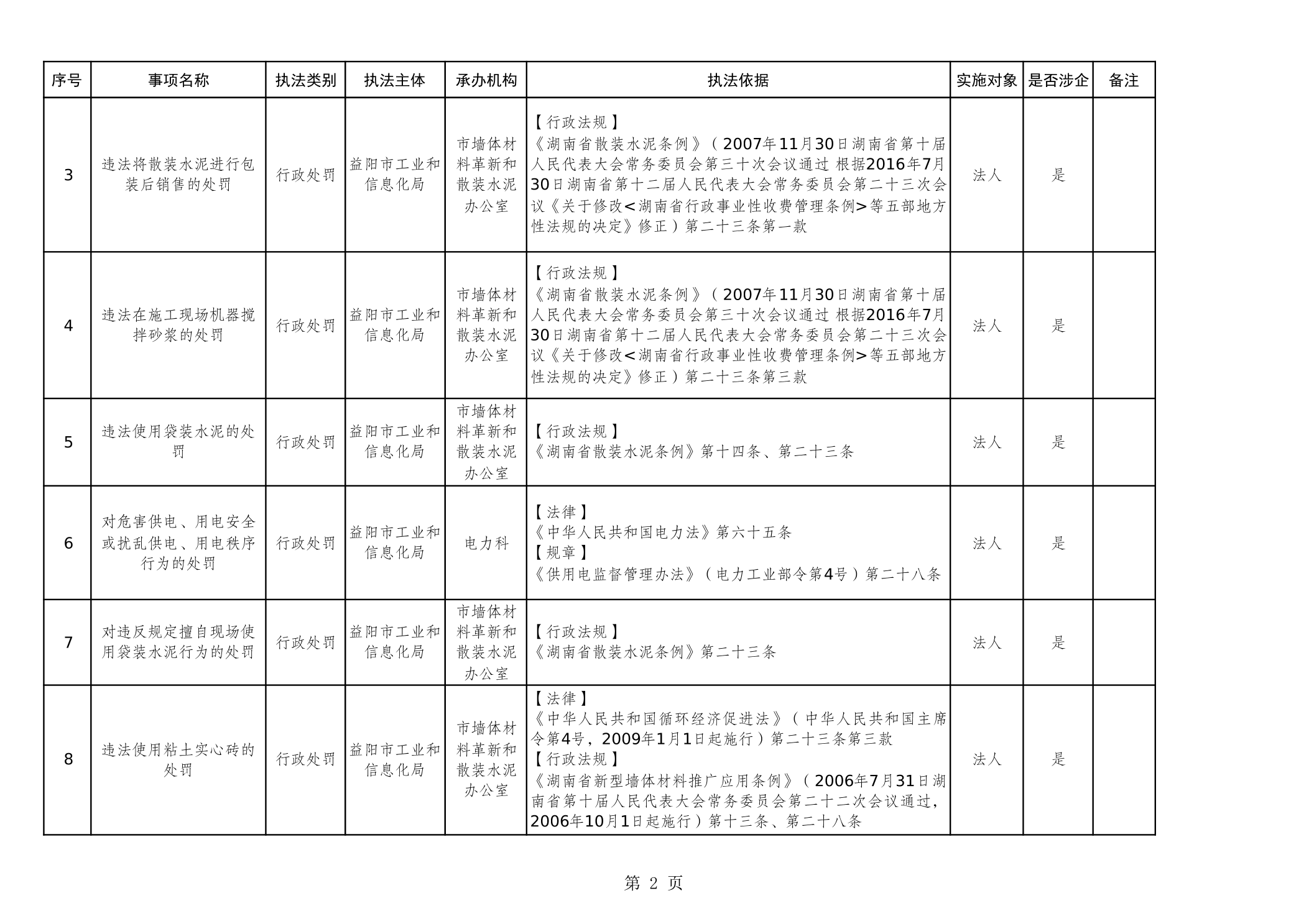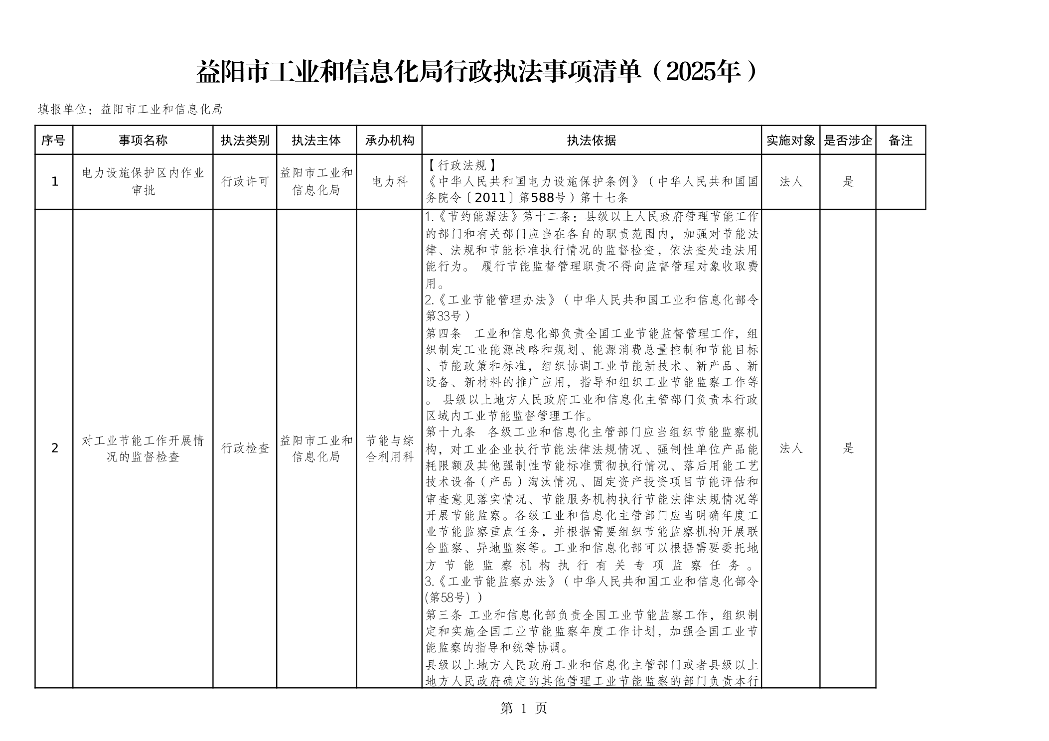 益阳市工业和信息化局行政执法事项清单(2025年)