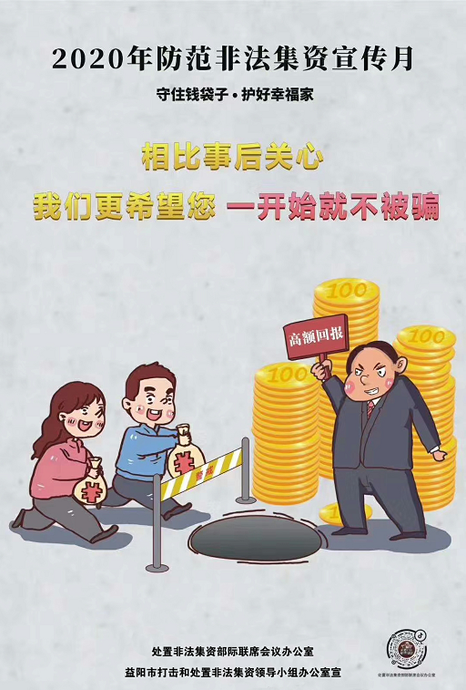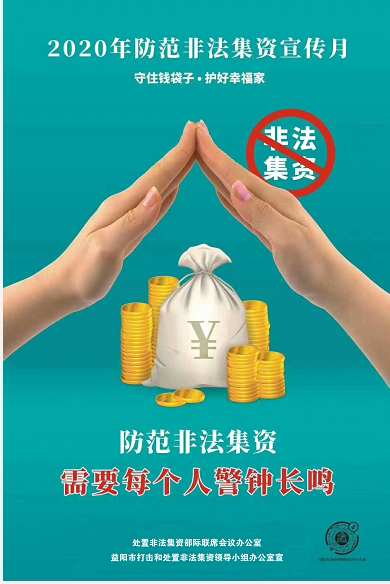 2020年6月是全国第8个防范非法集资宣传月。益阳市打击和处置非法集资领导小组办公室发布《关于开展2020年防范非法集资宣传月活动的通知》,将集中开展以“守住钱袋子·护好幸福家”为主题的防范非法集资宣传月活动,并确定6月15日为集中宣传日。
