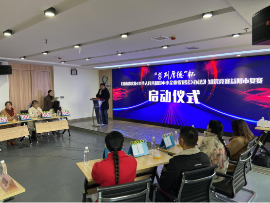 12月24日,“紫荆厚德”杯《湖南省实施<中华人民共和国中小企业促进法>办法》知识竞赛益阳市复赛在益阳青年创新创业孵化基地二楼路演厅成功举行,本次比赛由湖南省工业和信息化厅指导,益阳市工业和信息化局主办,益阳市中小企业公共服务平台网络协办,益阳百创中小企业服务有限公司、湖南臻有趣管理咨询有限公司、益阳东部中小企业服务有限公司、益阳市财掌柜中小企业服务有限公司、湖南紫荆厚德创业服务有限公司承办。益阳市工信局二级调研员张介球出席竞赛并致辞。