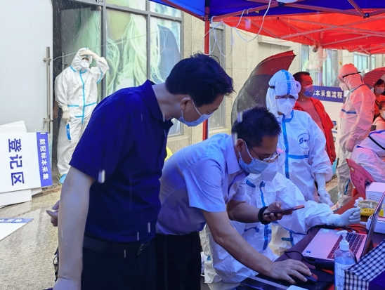 8月5日,为切实强化核酸检测点的网络与通信畅通保障,市工信局、市通管办、三家通信运营商联合组成4个调查指导组,分赴中心城区的15个核酸检测点和汽车南站、汽车北站开展了现场调查指导。