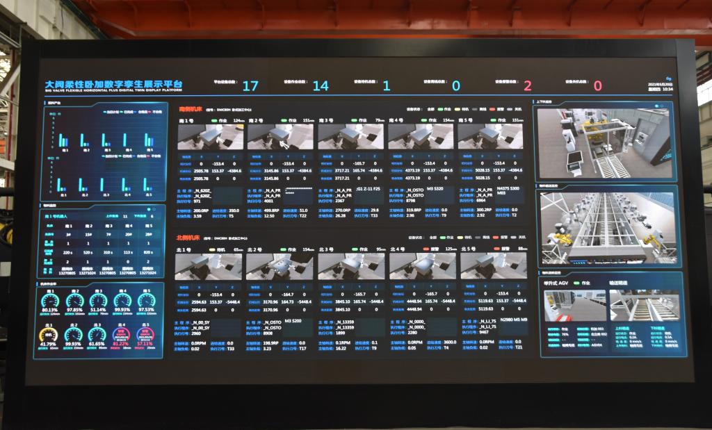 三一重工“18号厂房”内的数字孪生展示平台。新华社记者白田田 摄