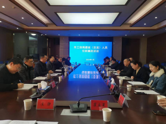 1月29日,益阳市工业和信息化局组织对新提拔、交流的干部们进行任前廉政谈话。市工信局党组书记、局长李恩念出席并讲话,全体局领导参加任前廉政谈话。