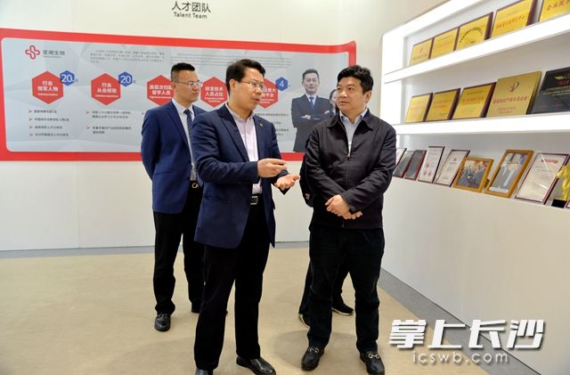 长沙高新区管委会副主任帅军(右二)陪同调研。