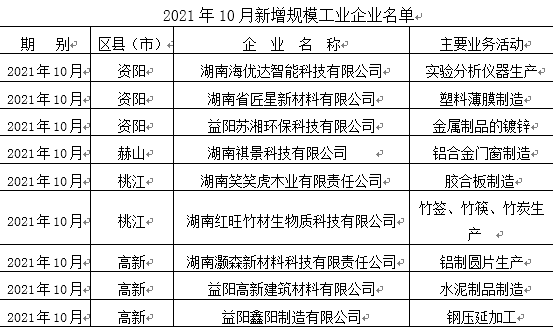 2021年10月,益阳市9家新投产工业企业通过申报纳入规模以上工业统计范畴获得通过, 全市当年新增规模以上工业企业达40家。