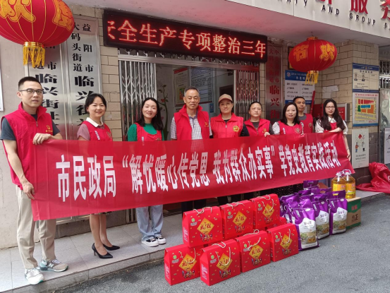 为进一步把党史学习教育与民政社会救助等重点工作、文明创建活动有机结合起来,扎实开展“我为群众办实事”实践活动,推进党史学习教育走深走实,6月9日,益阳市民政局组织10名党员志愿者,由副局长贵秋民带队,深入到结对帮扶的资阳区大码头街道临兴街社区开展“解忧暖心传党恩 我为群众办实事”学党史学习教育实践活动,为10户低保、特困人员送上了食用油、米、粽子,并提前送上了端午节的祝福。