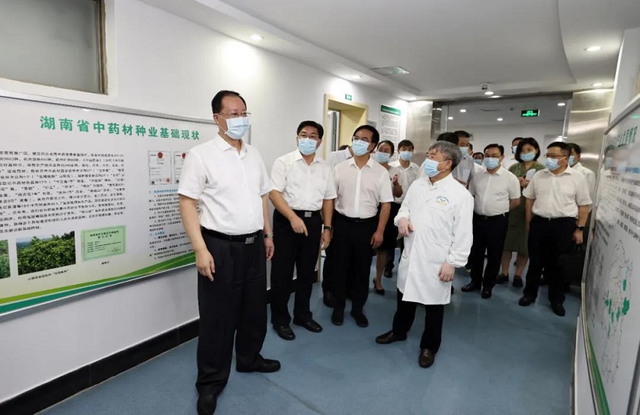 8月24日,毛伟明在湖南农业大学岳麓山中药材种业创新中心调研。