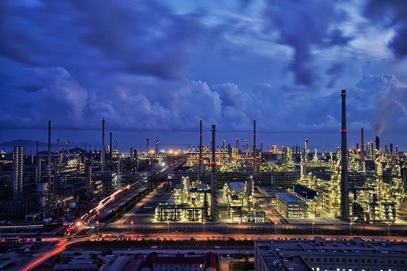 这是夜幕中的浙江舟山鱼山岛绿色石化基地(2020年9月27日摄)。新华社发(张帆 摄)