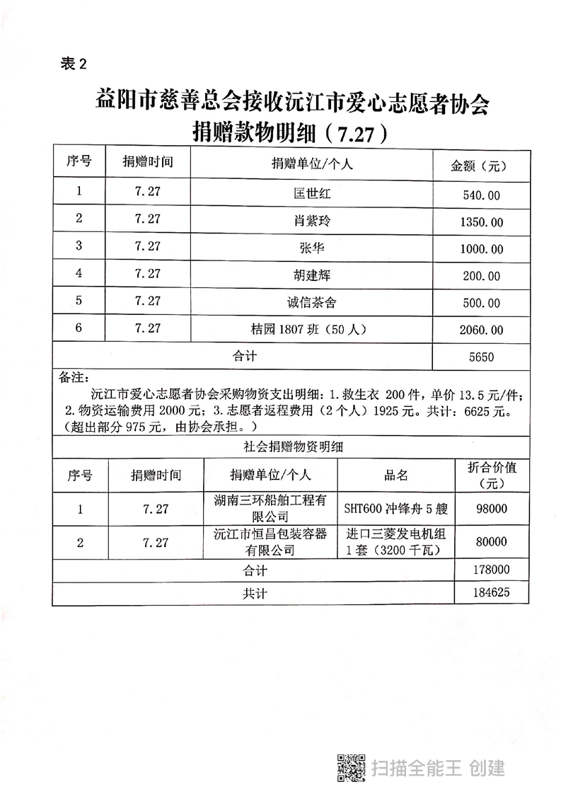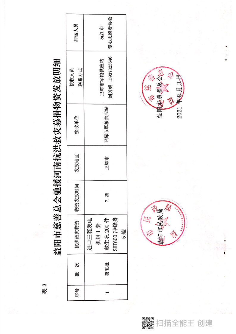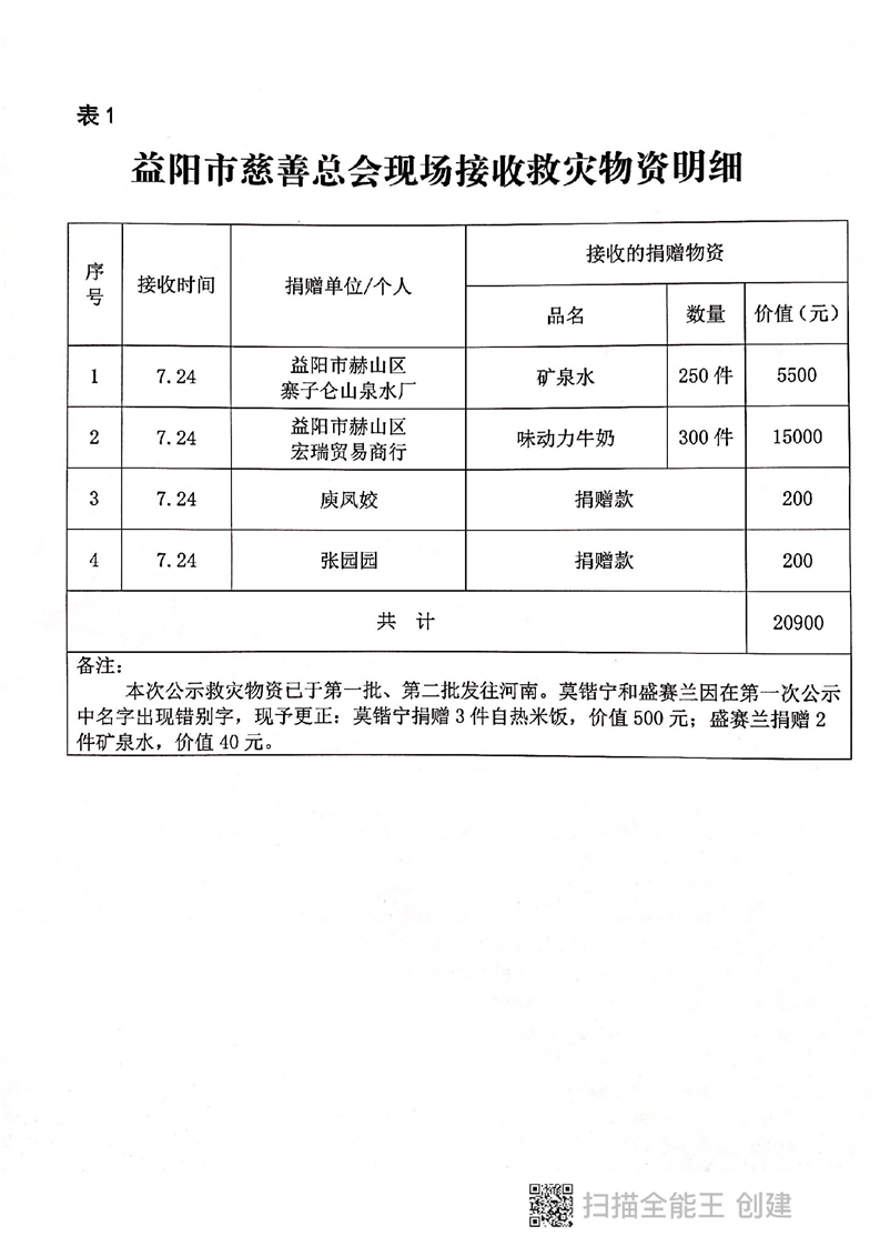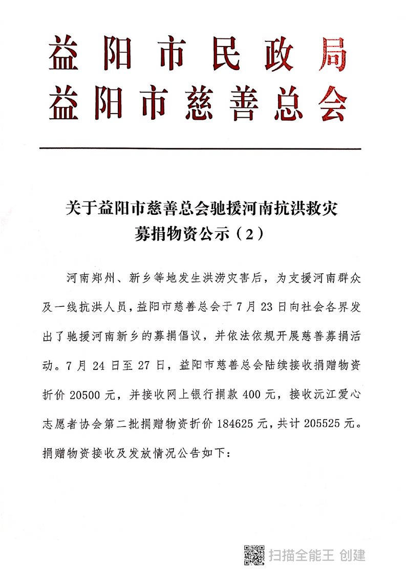 关于益阳市慈善总会驰援河南抗洪救灾募捐物资公示2