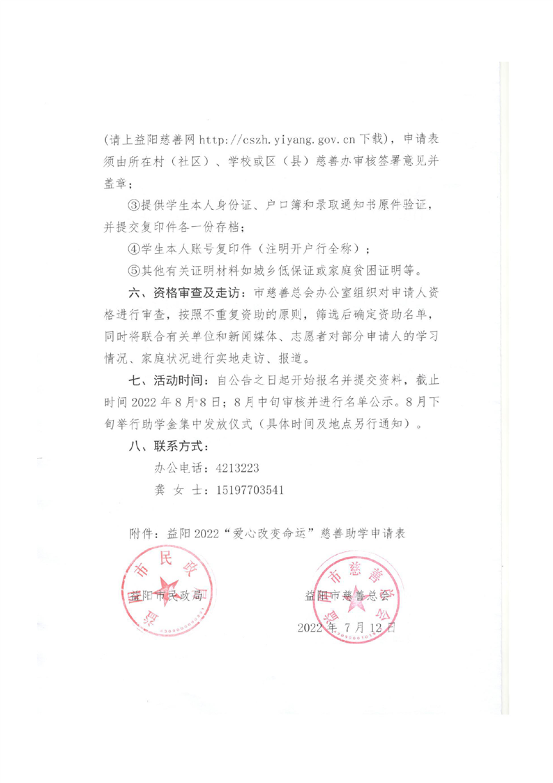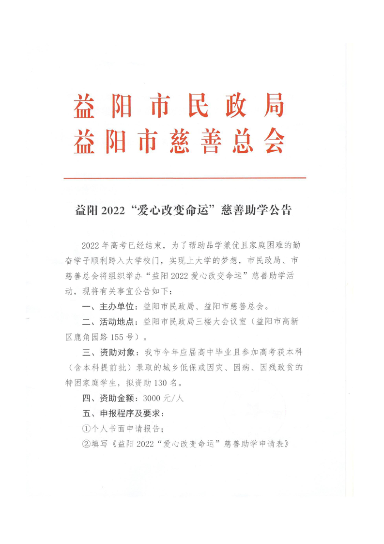 益阳2022“爱心改变命运”慈善助学活动方案
