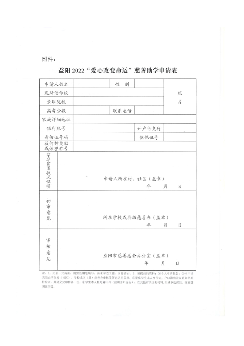 益阳2022“爱心改变命运”慈善助学申请表.doc
