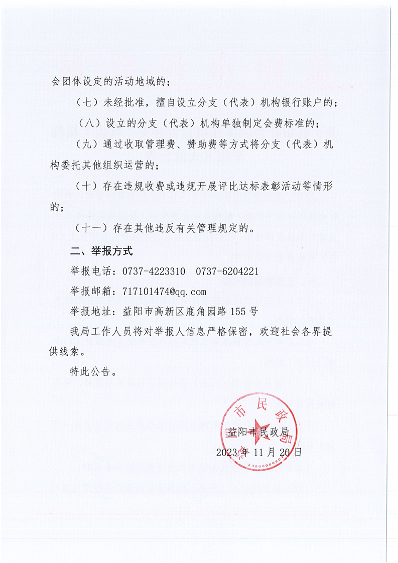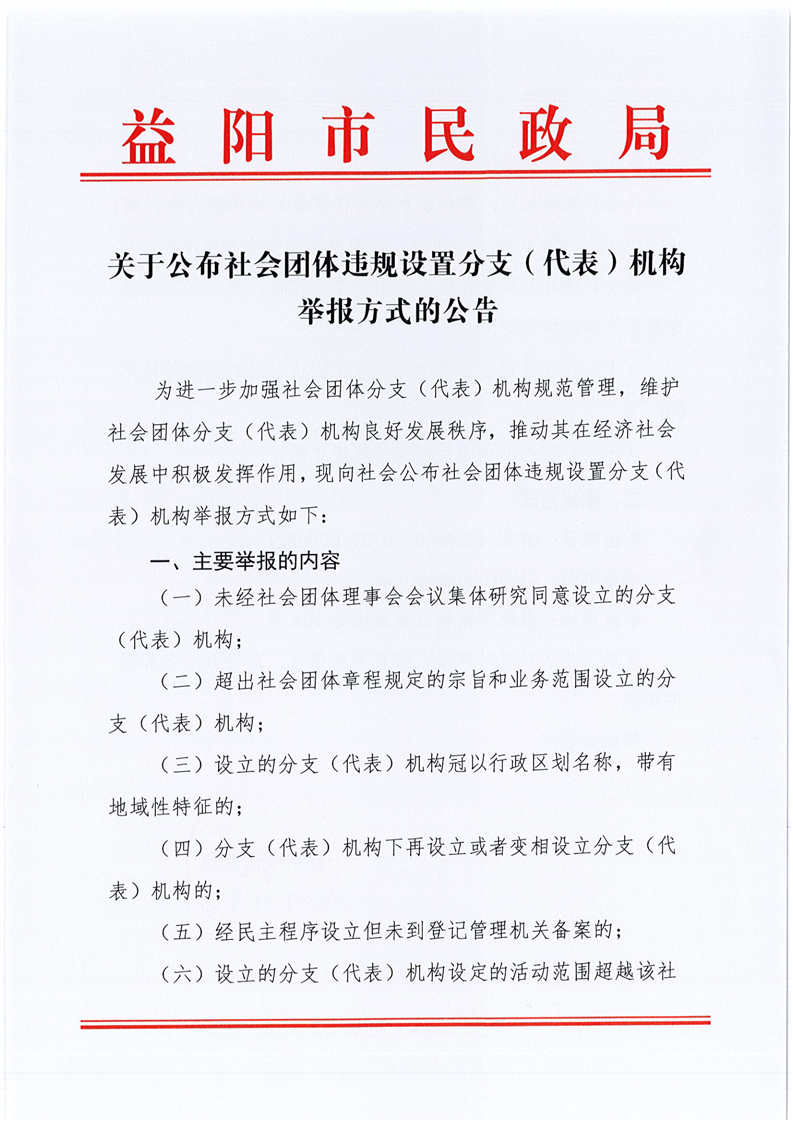 关于公布社会团体违规设置分支(代表)机构举报方式的公告