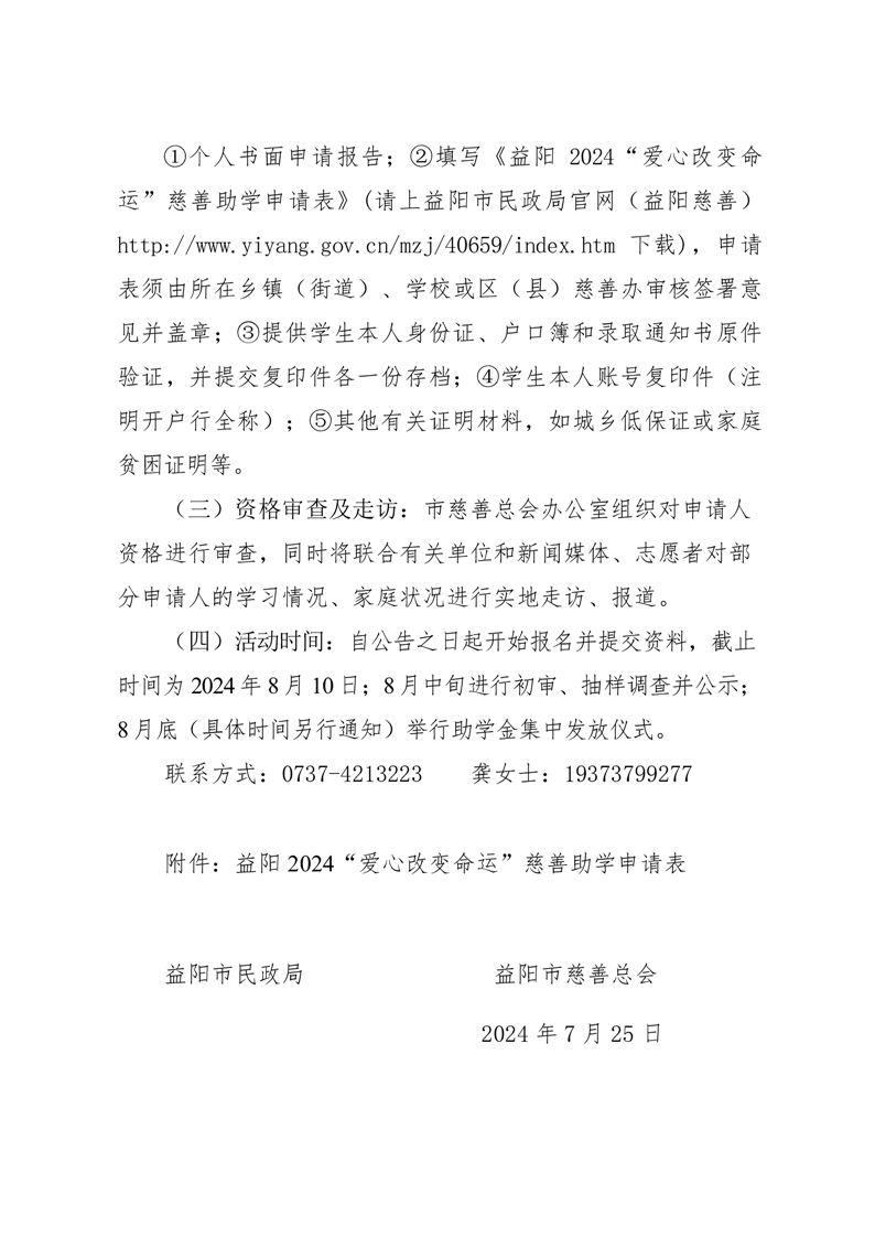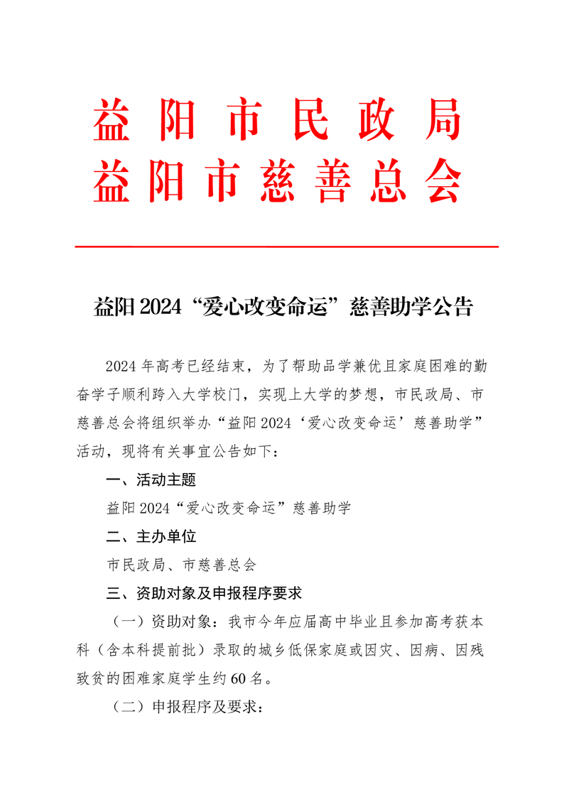 益阳2024“爱心改变命运”慈善助学公告.doc
