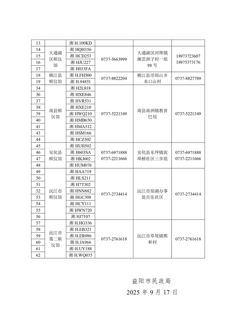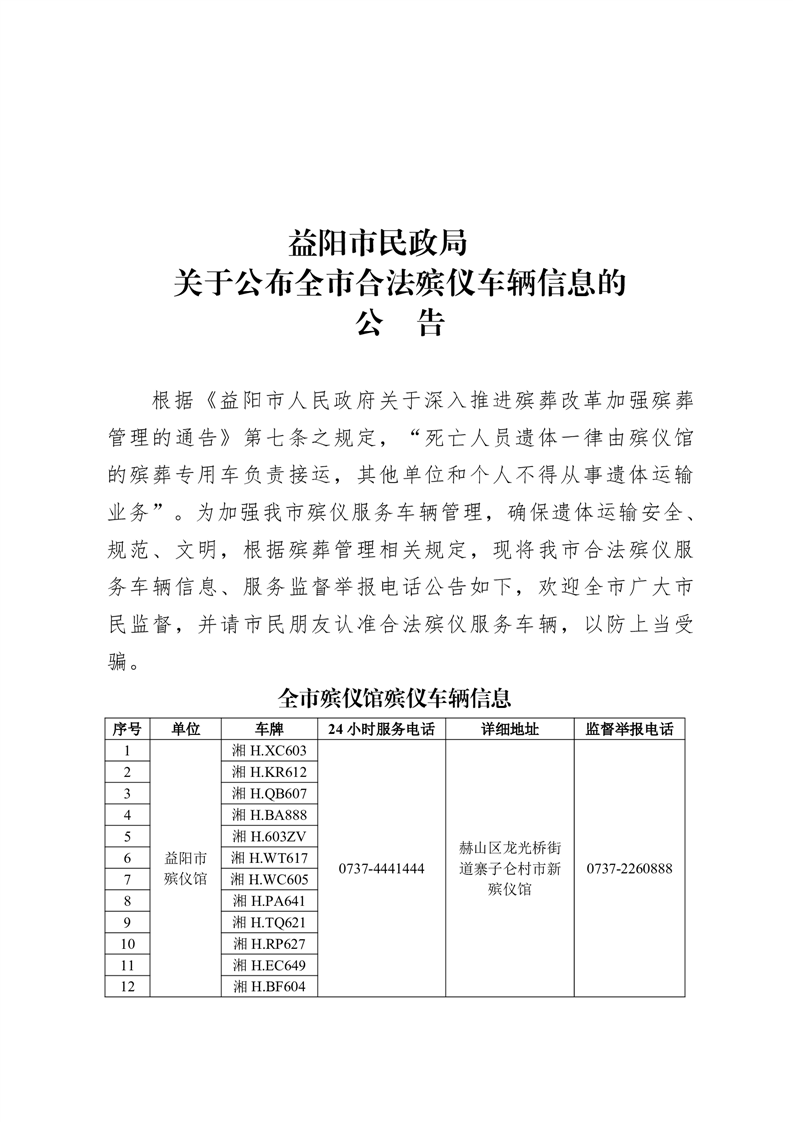 益阳市民政局关于公布全市合法殡仪车辆信息的公告