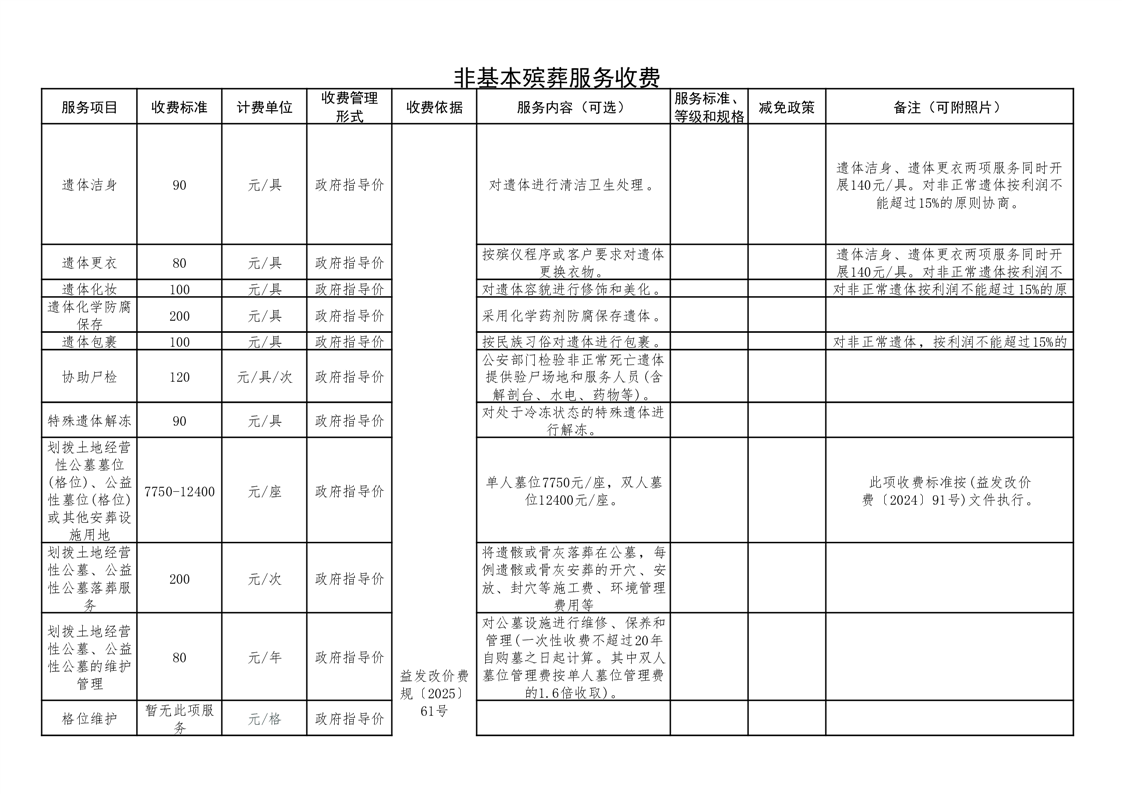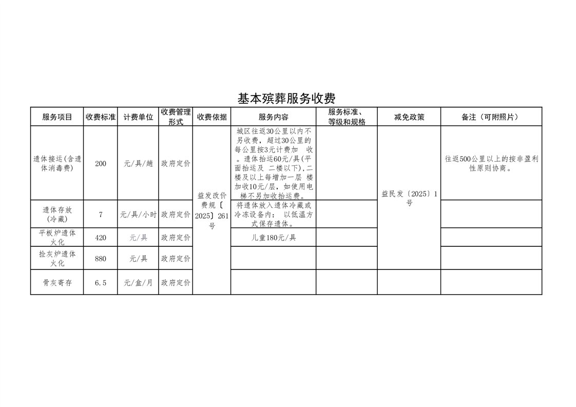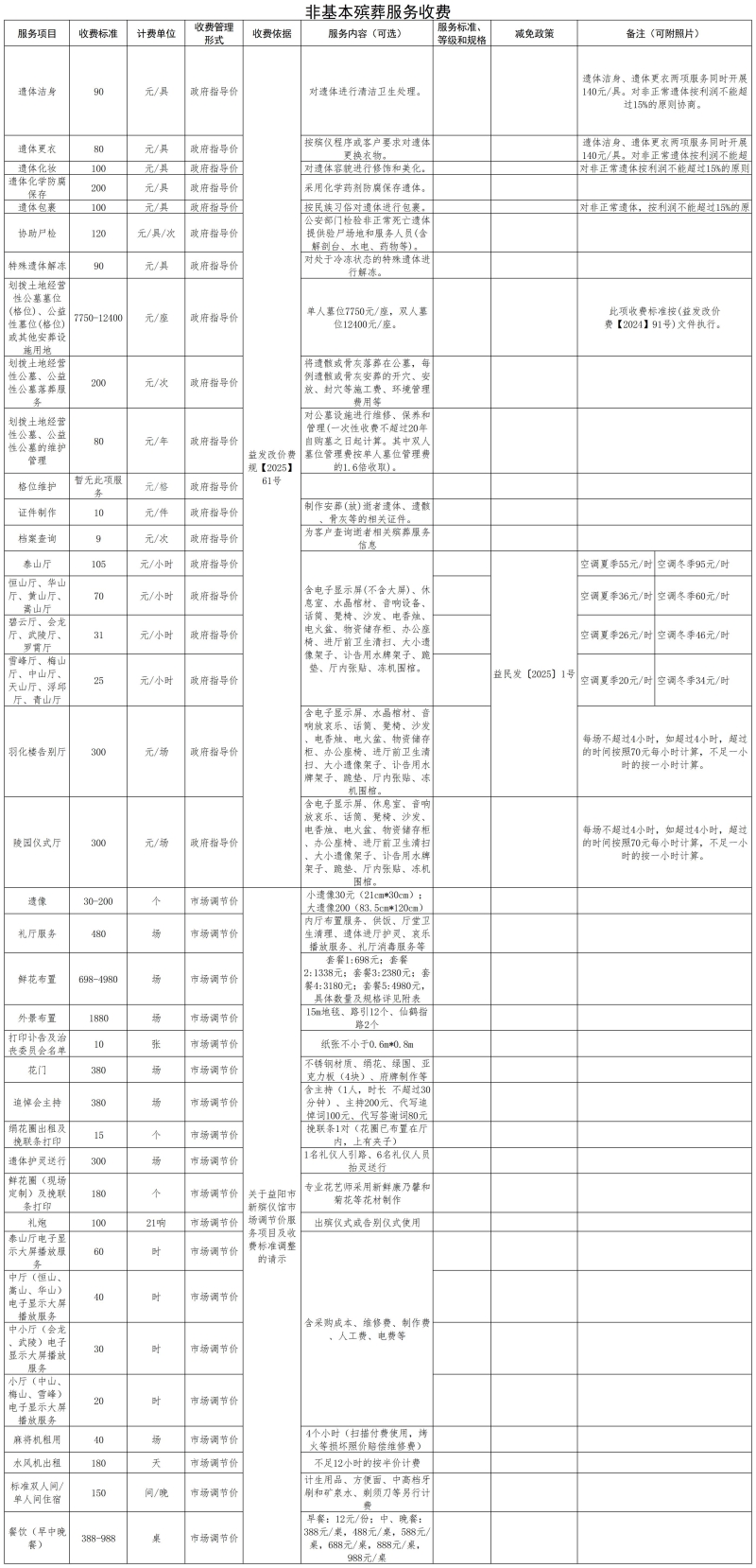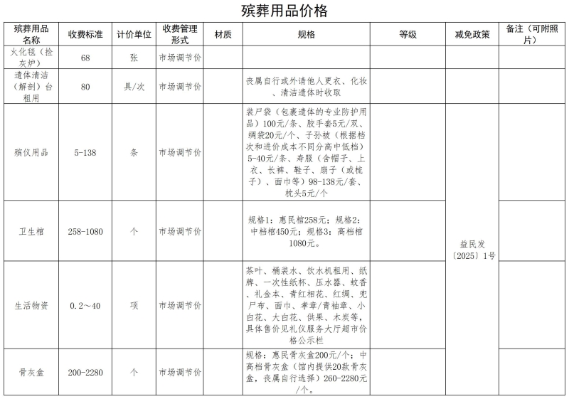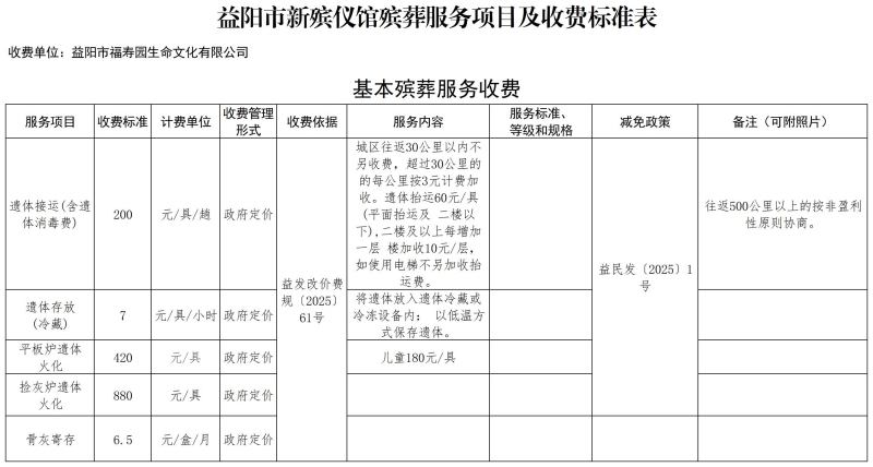 益阳市殡仪馆收费公示