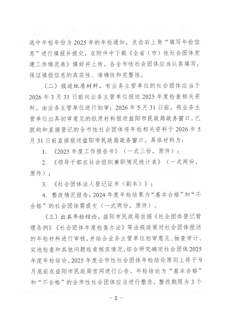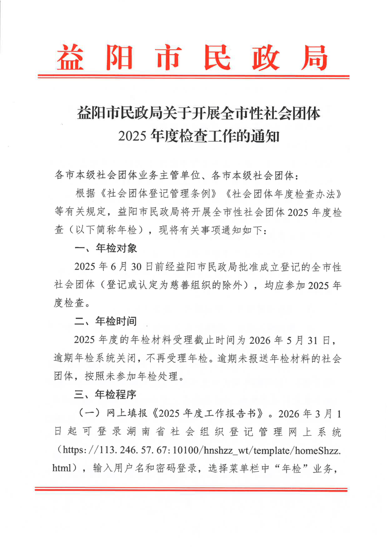益阳市民政局关于开展全市性社会团体2025年度检查工作的通知