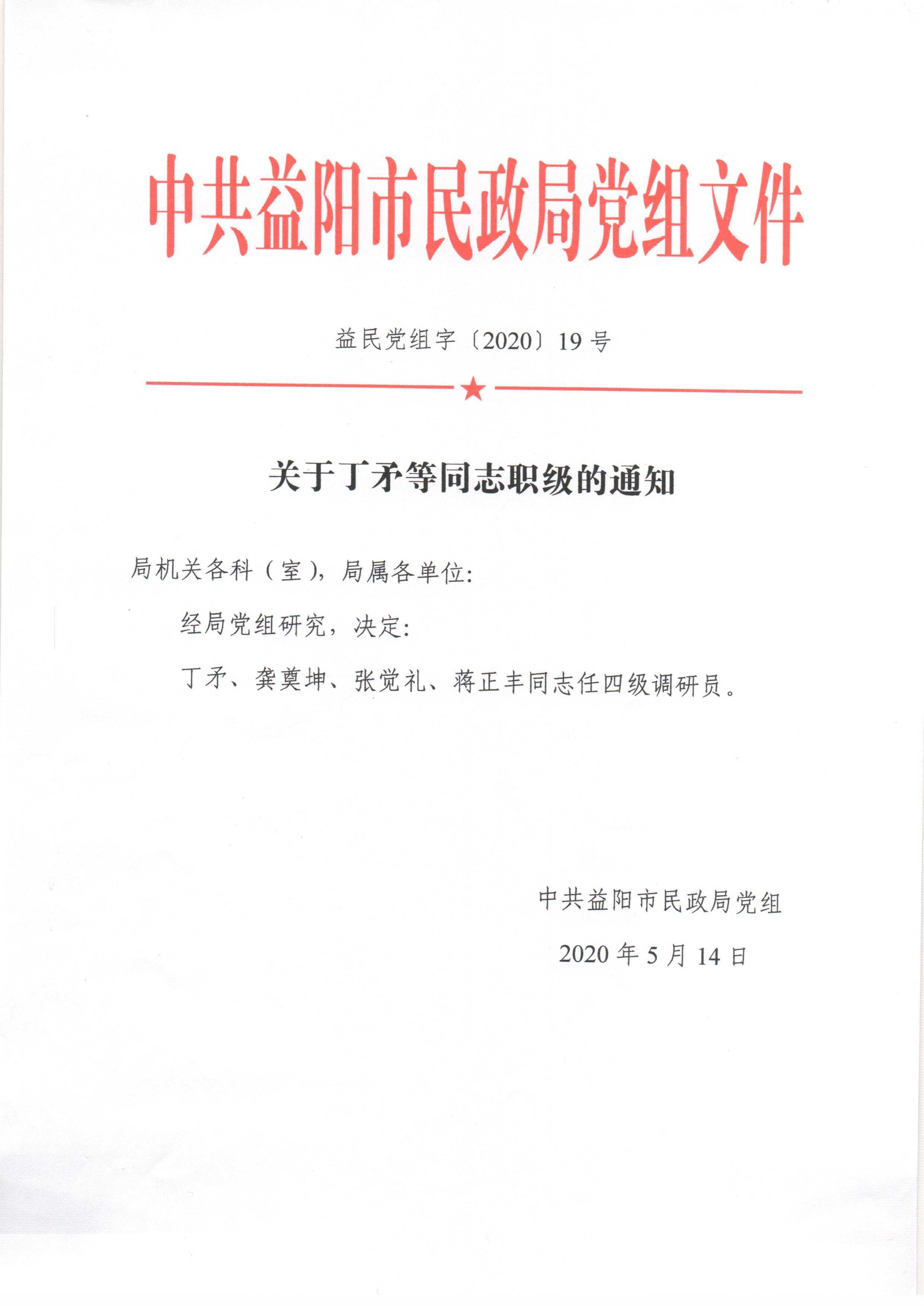 关于丁矛等同志职级的通知 益民党组字【2020】19号