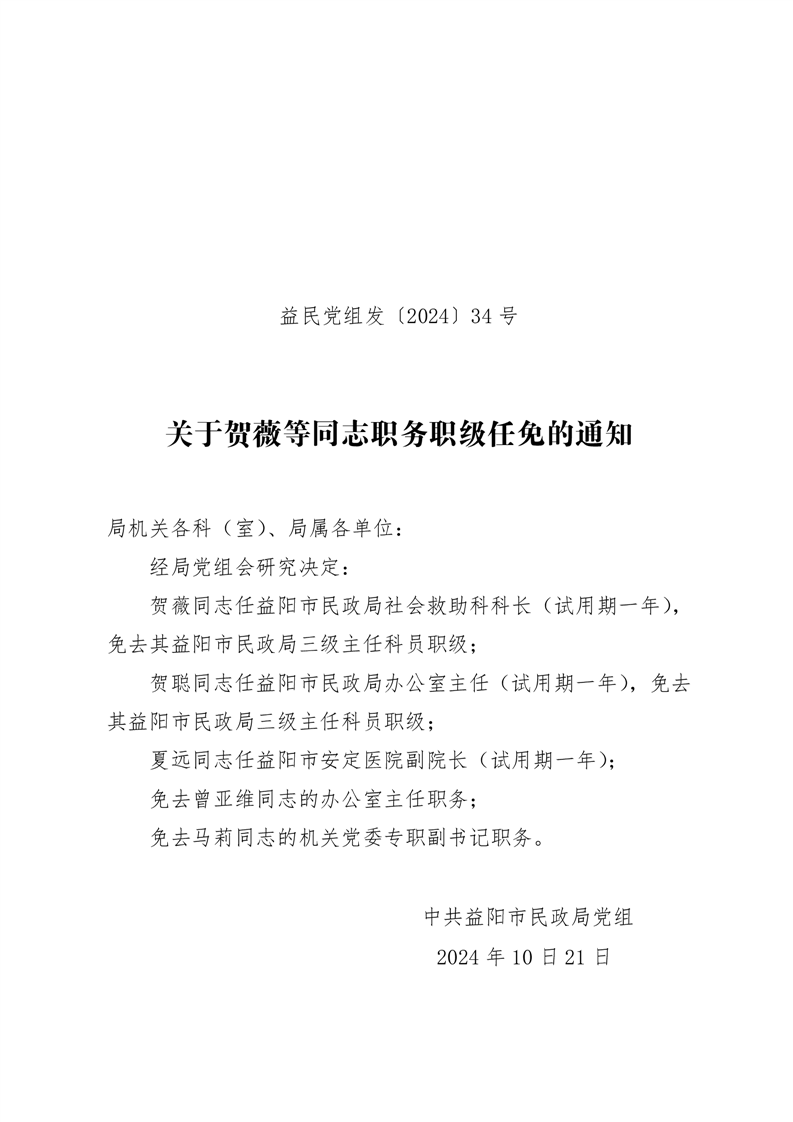 关于贺薇等同志职务职级任免的通知