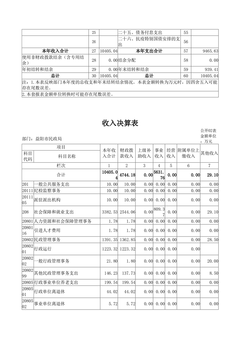 2024年度益阳市民政局部门决算