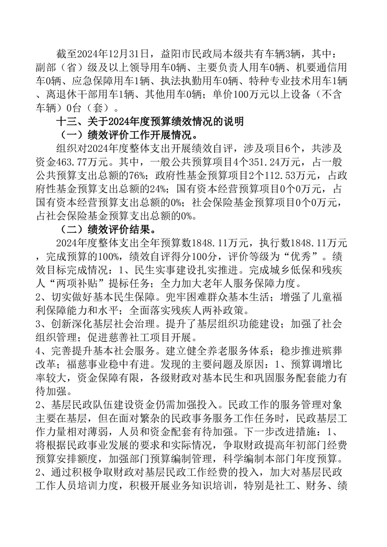 2024年度益阳市民政局本级部门决算