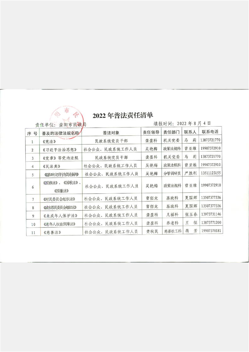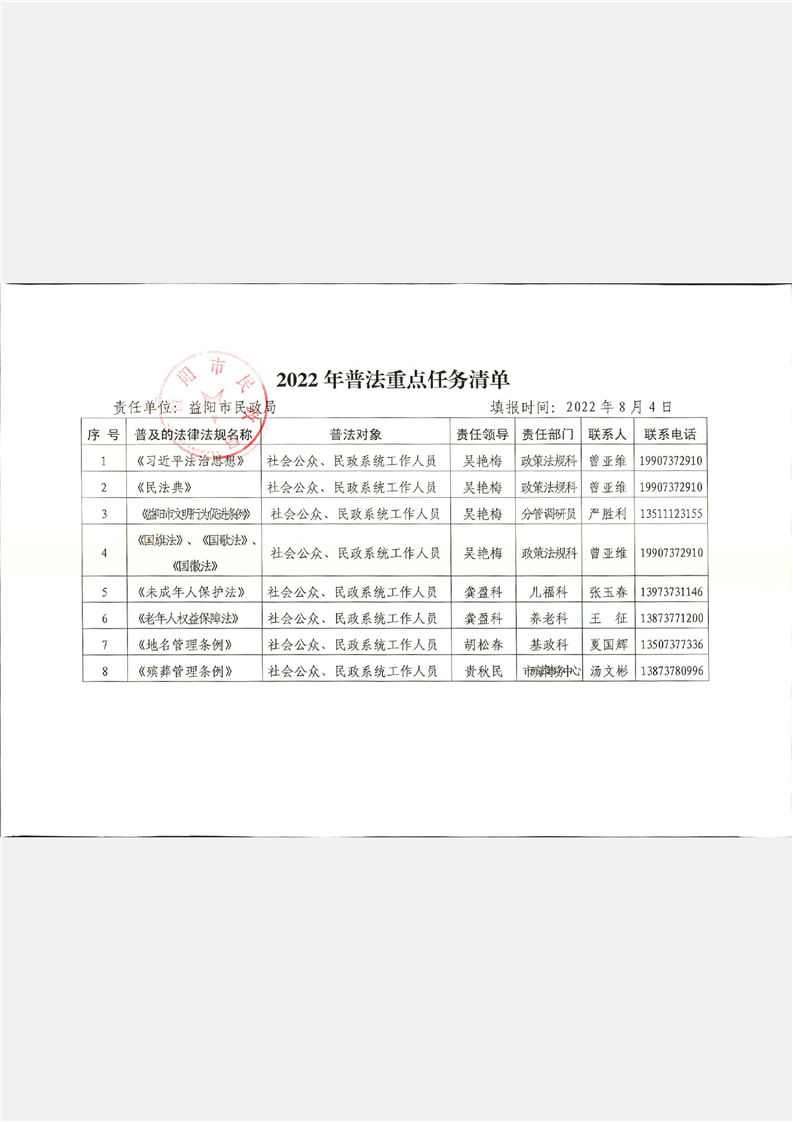 市民政局普法责任清单和2022年度普法重点任务清单