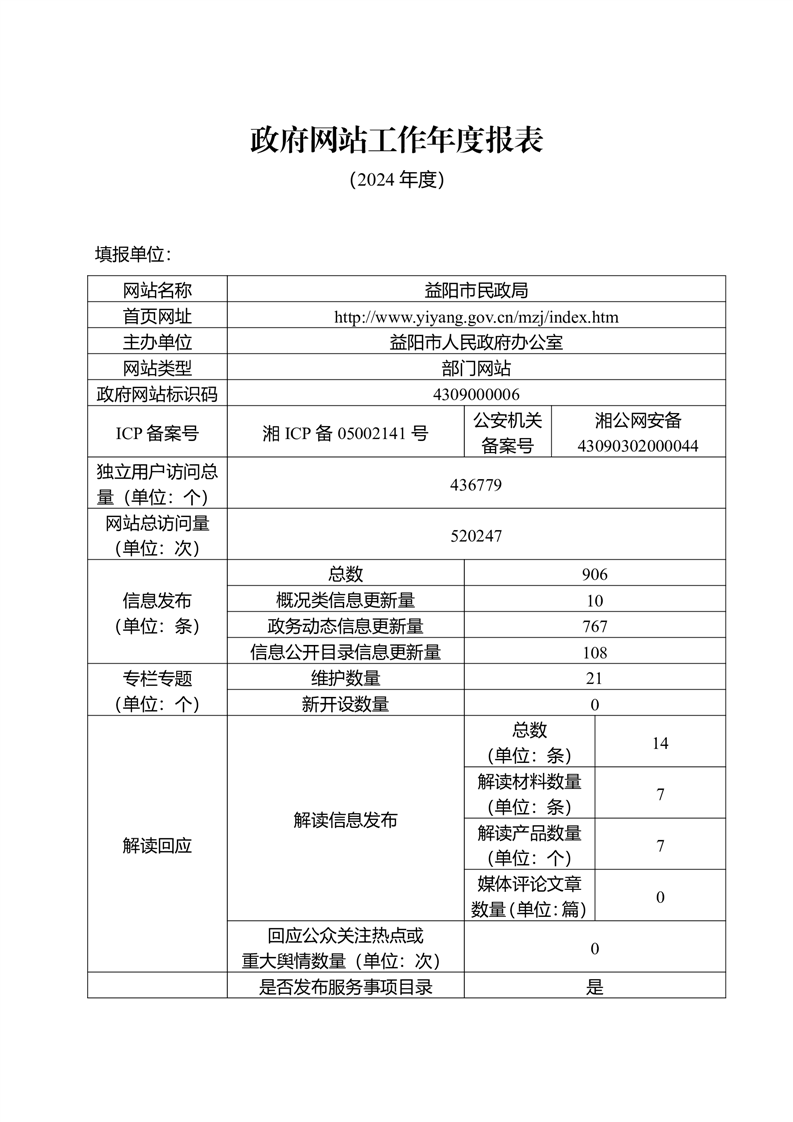益阳市民政局2024年政府网站工作年度报表