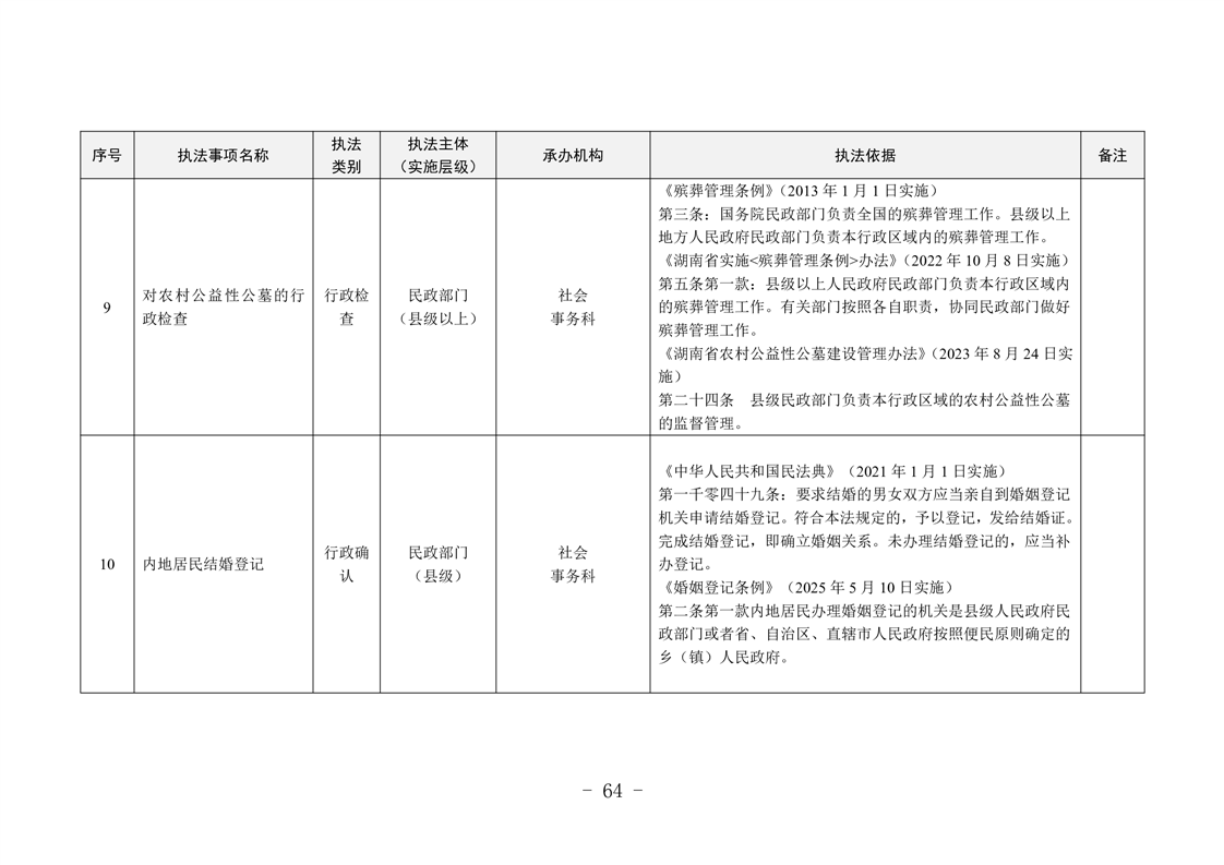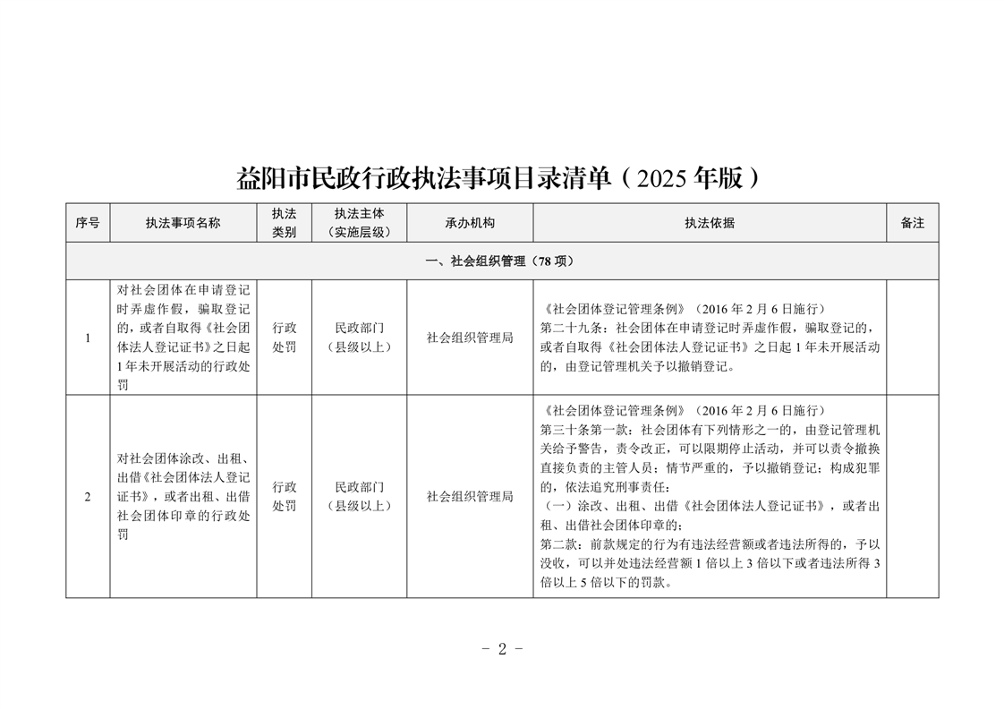 益阳市民政行政执法事项目录清单(2025年版)