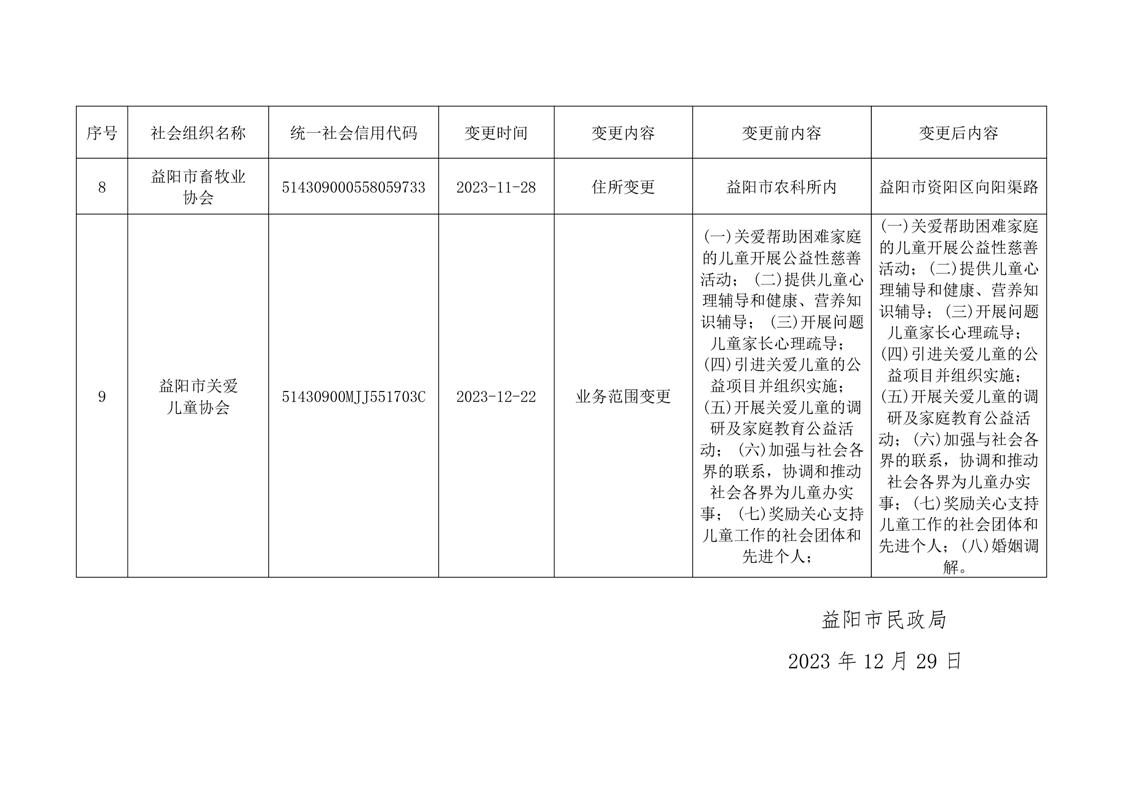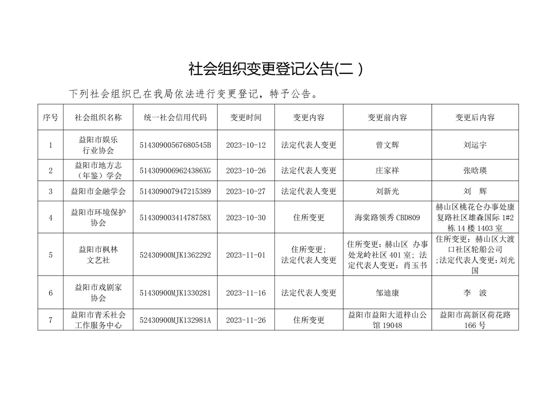 益阳市娱乐行业协会等7家社会组织变更登记公告