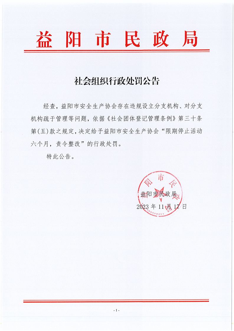 社会组织行政处罚公告