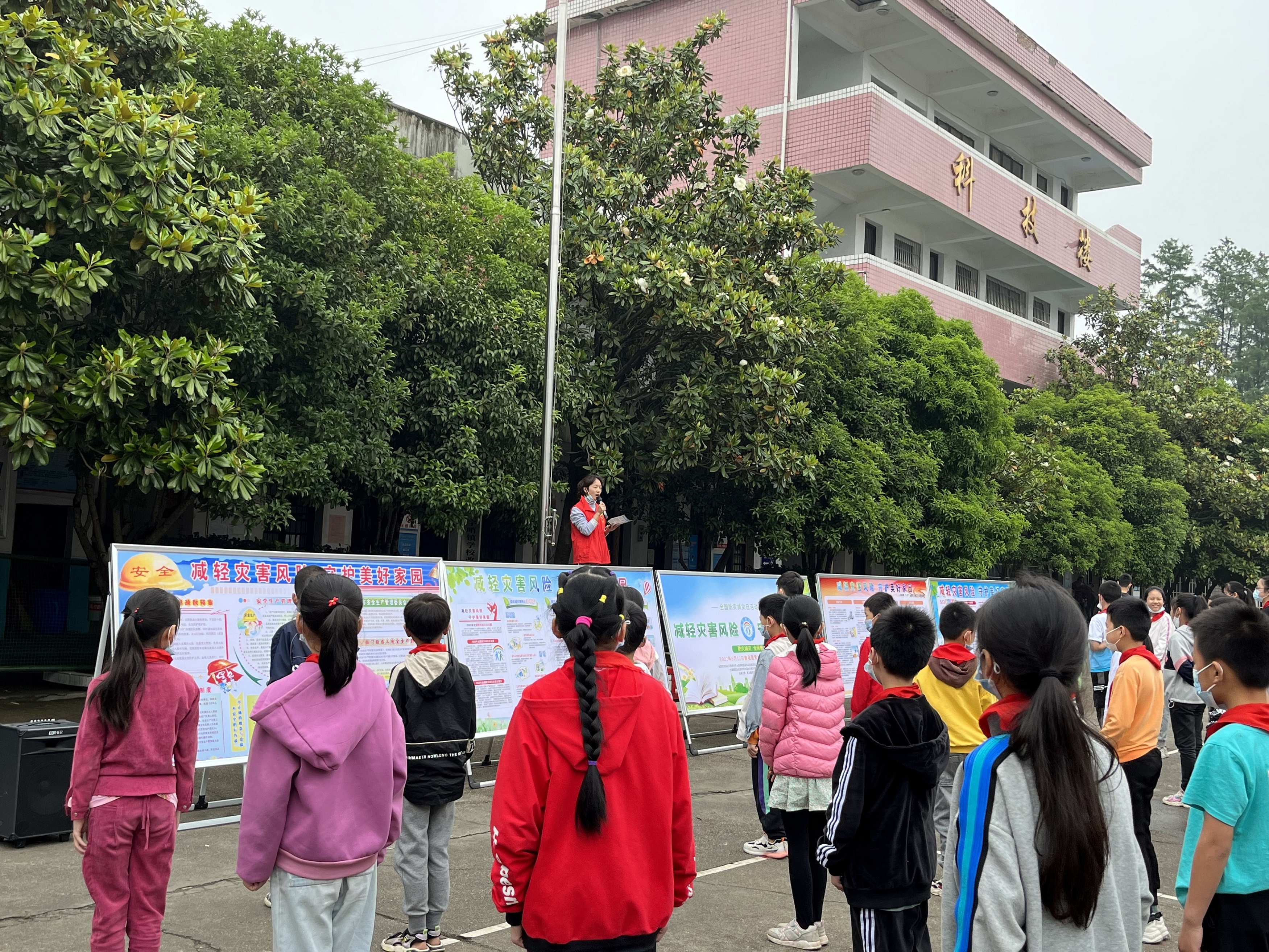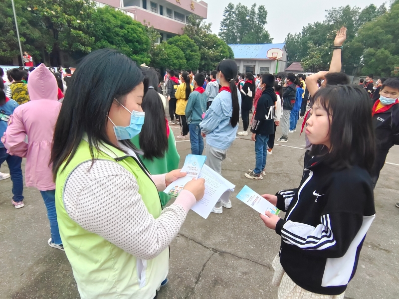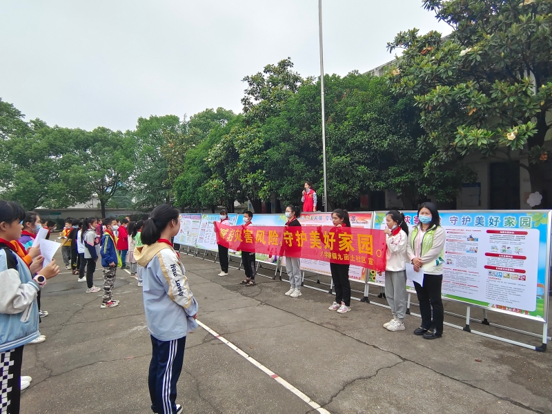 活动中,志愿者在国旗下讲话,普及推广全民防灾减灾知识和避灾自救技能,同时在学校悬挂防灾减灾宣传横幅、设置宣传展牌、向师生发放防灾减灾、防溺水安全知识宣传折页,营造浓厚的防灾减灾氛围。