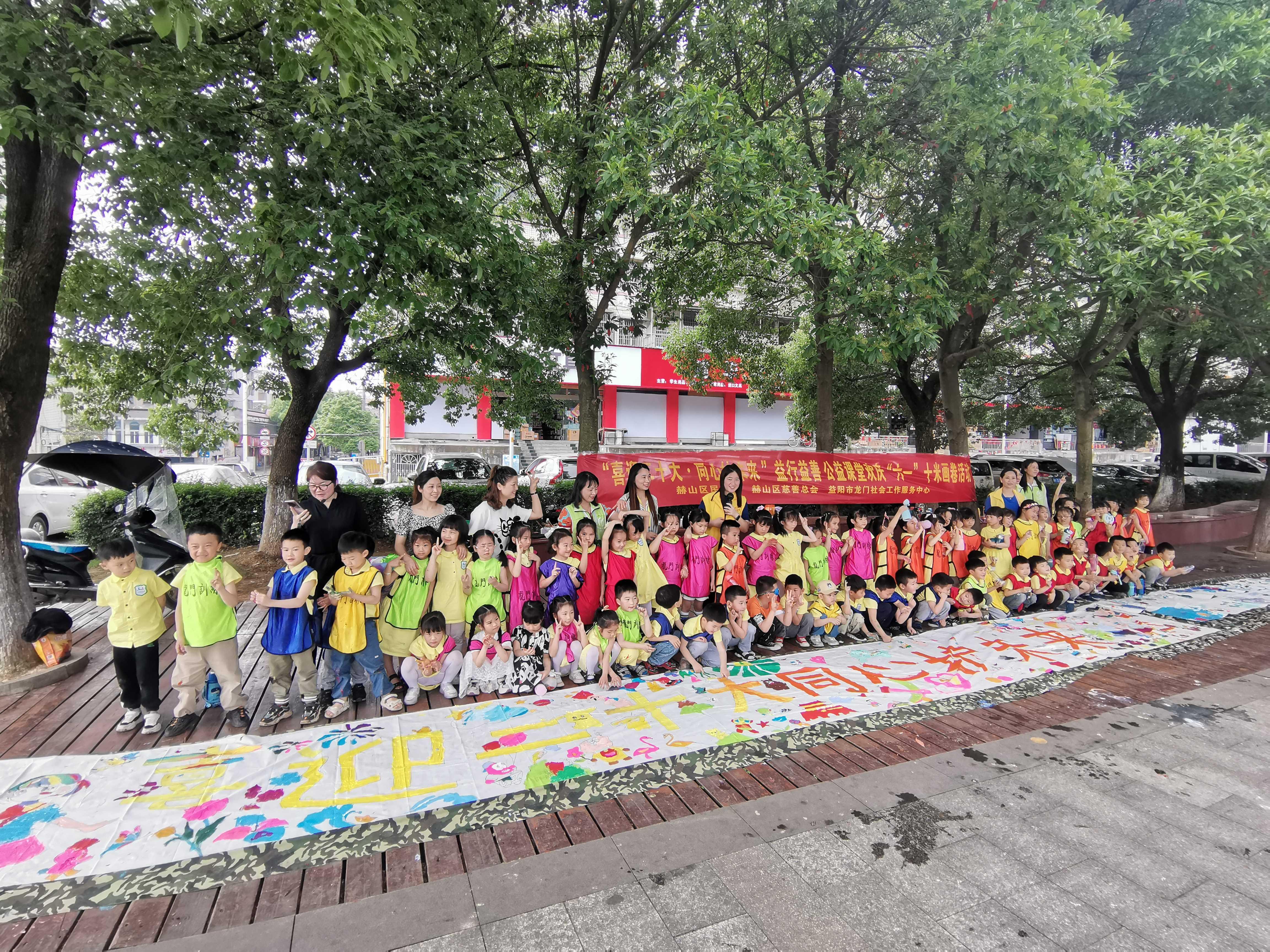 5月25日,在益阳市民政局、益阳市慈善总会的指导下,由赫山区民政局、赫山区慈善总会主办,益阳市龙门社会工作服务中心金银山街道社工站、粟公港社区联合承办的“喜迎二十大 同心护未来”益行益善公益课堂欢庆“六一”十米画卷活动在乐米斯特幼儿园如火如荼的开展。