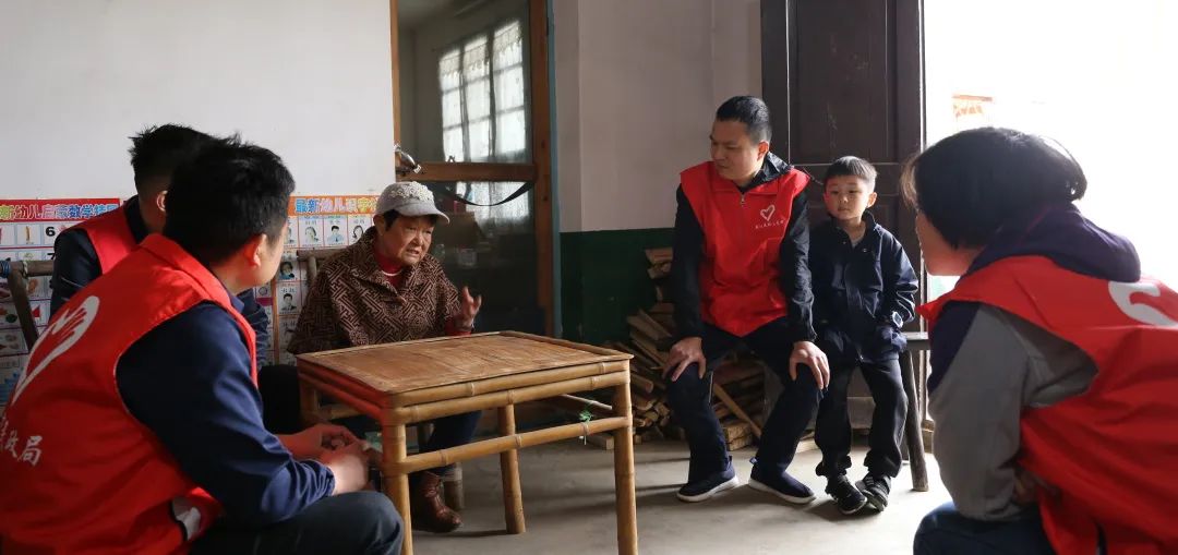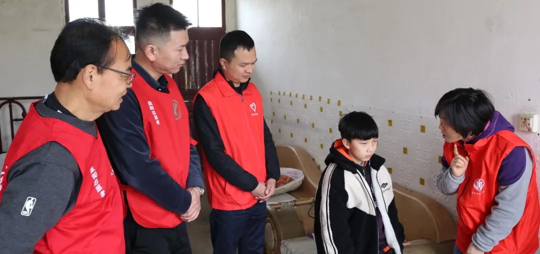 兰溪镇龙荣村10岁的小志成是困境儿童,市民政局志愿者给小志成带来了爱心物资,陪他一起聊天。