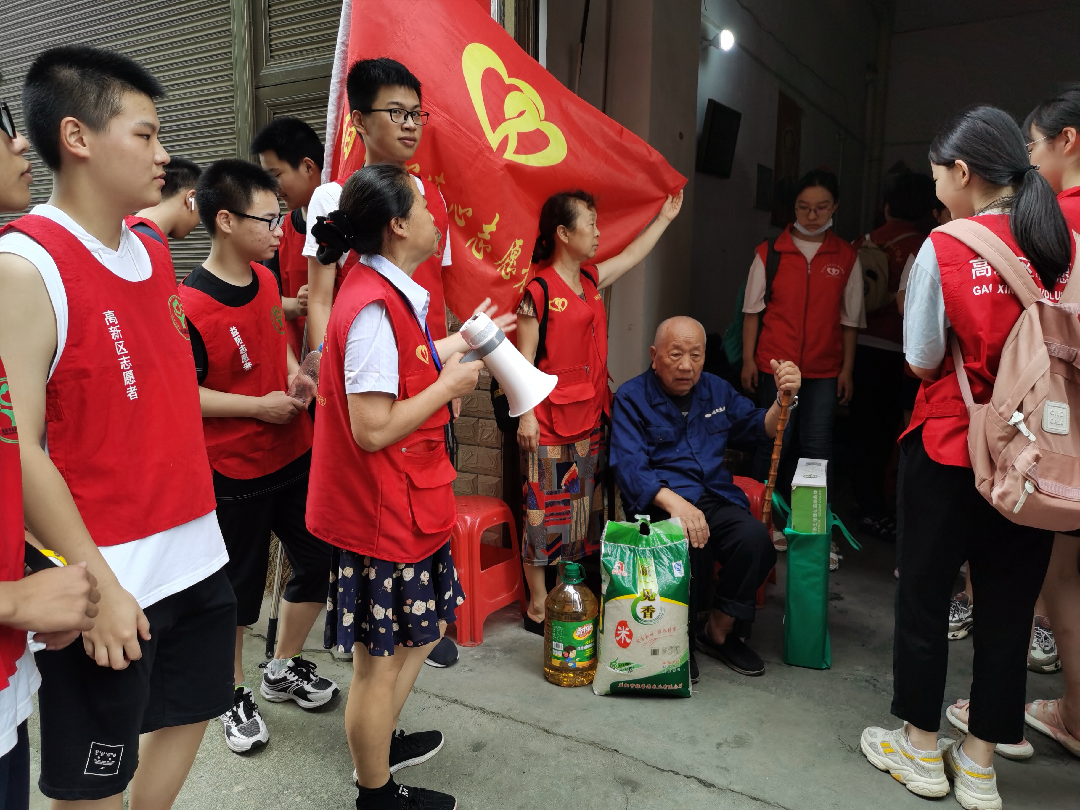 7月25日上午,益阳市心连心志愿者协会联合市十六中学开展“七彩假期,情系困难老人”学生社会实践活动。志愿者和学生排着整齐的队伍来到高新区朝阳街道明月安置小区。