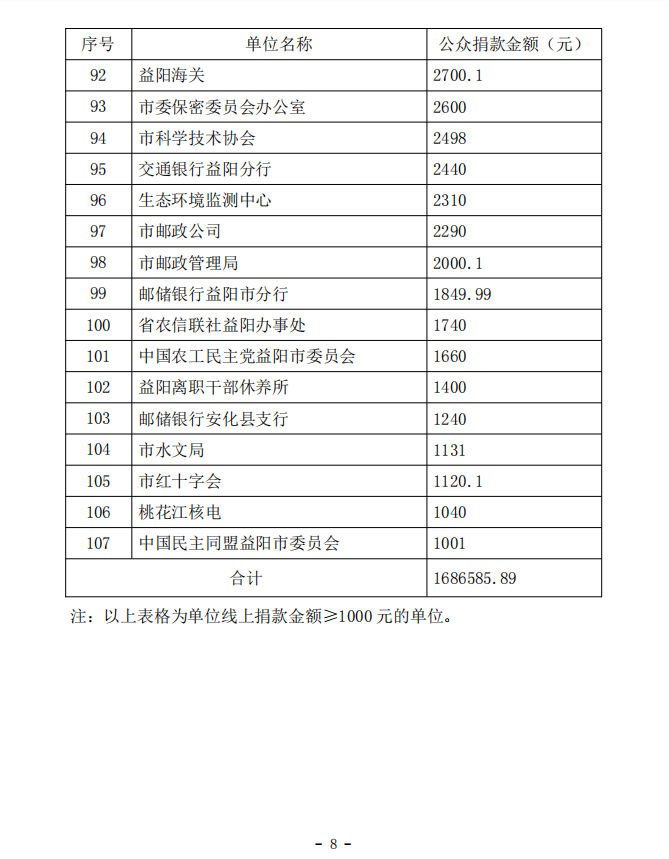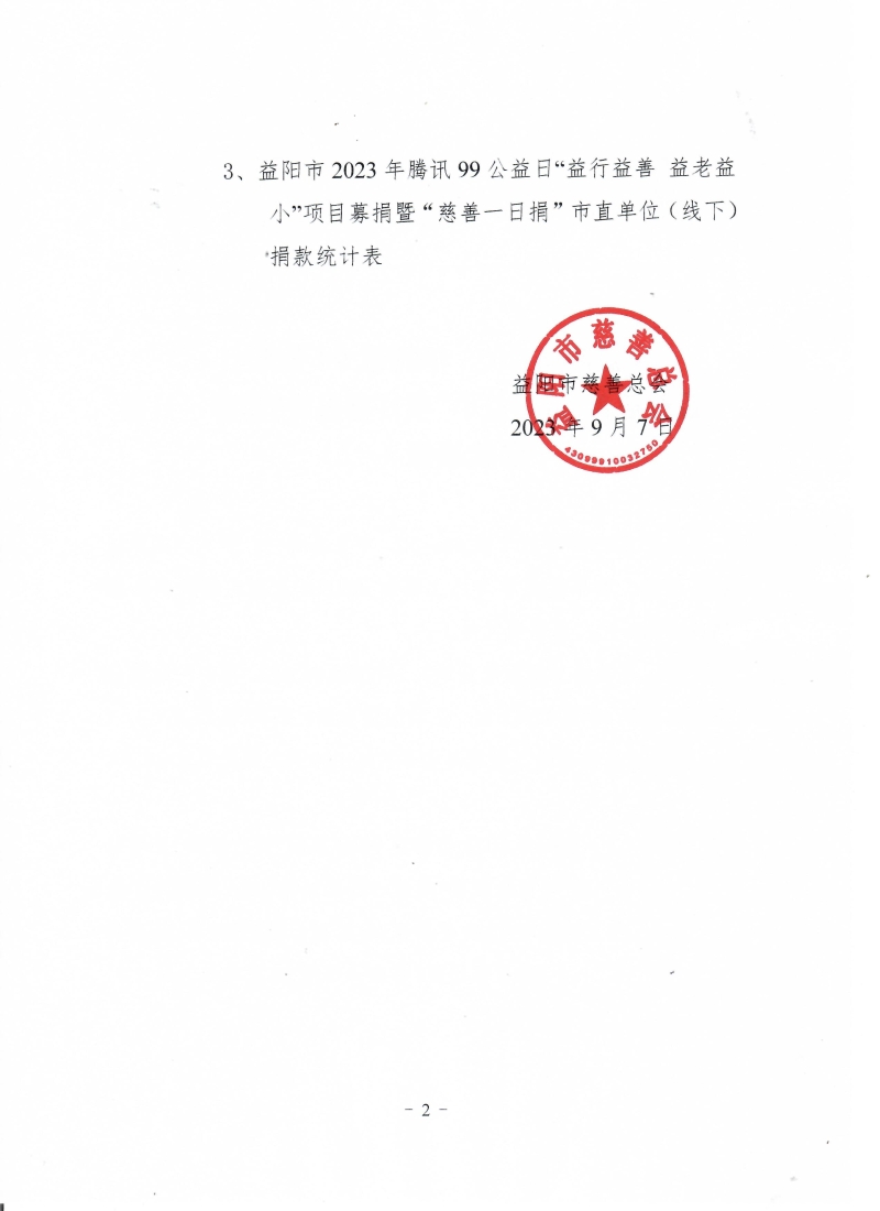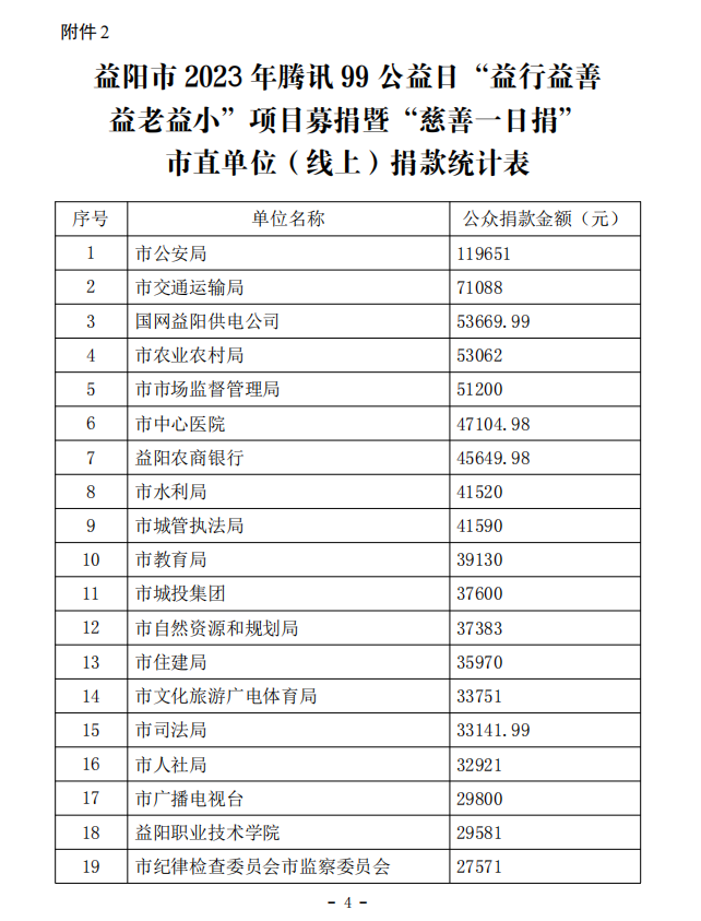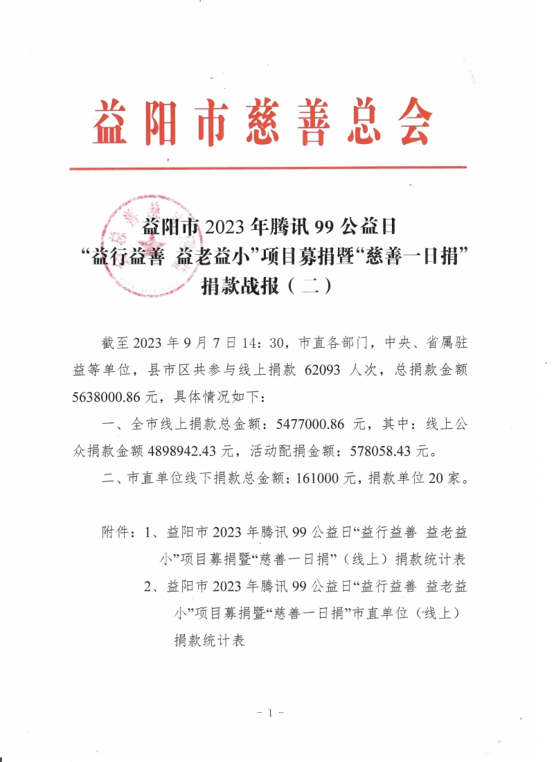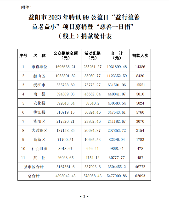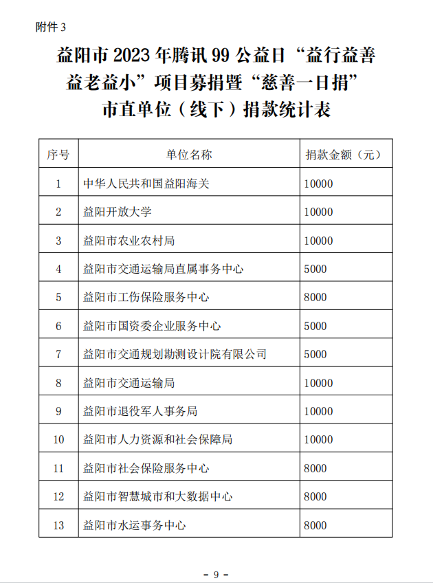 益阳市2023年腾讯99公益日“益行益善 益老益小”项目募捐暨“慈善一日捐”捐款战报(二)
