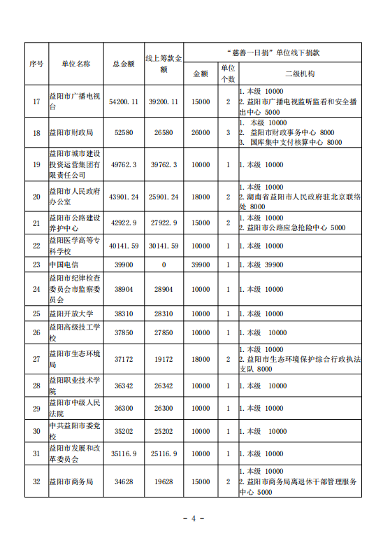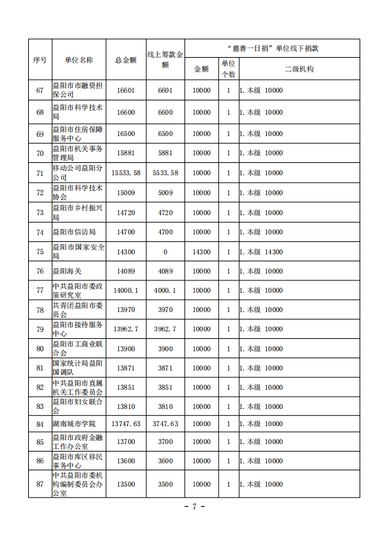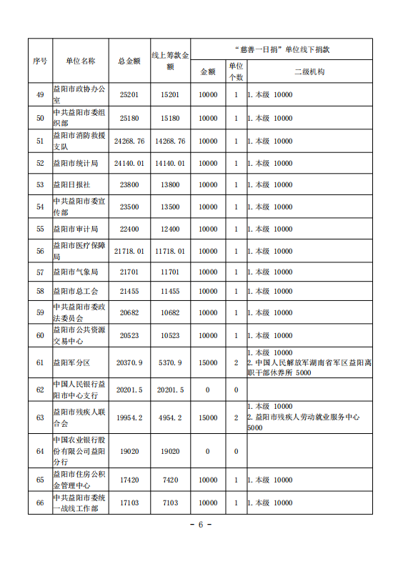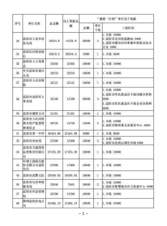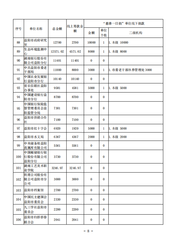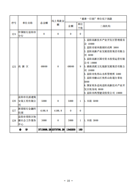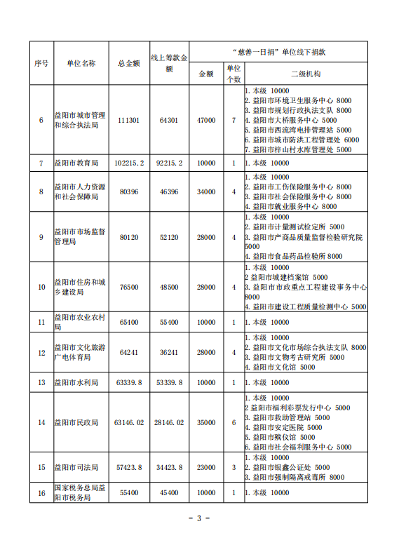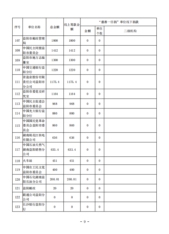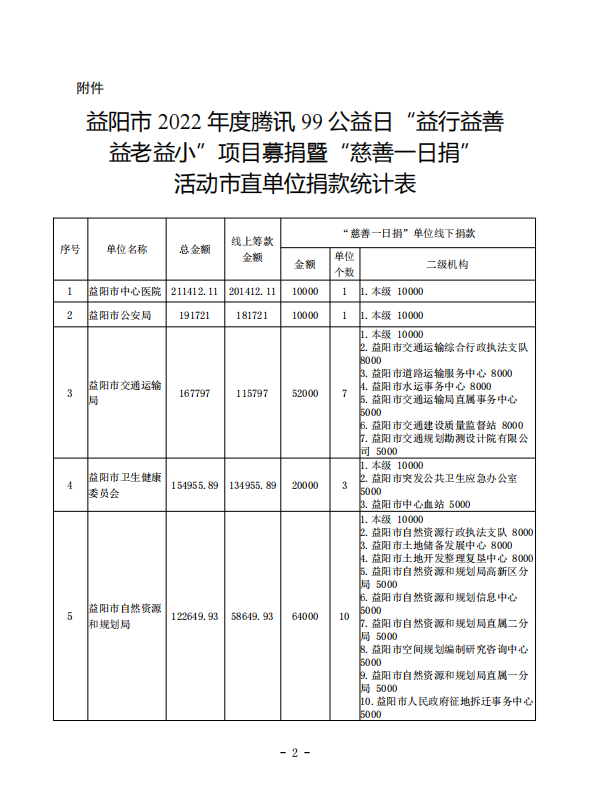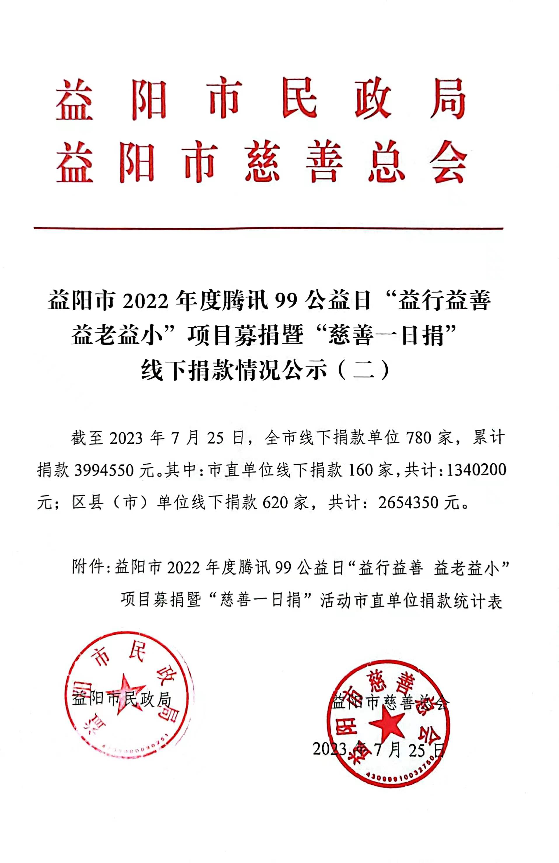 益阳市2022年度腾讯99公益日“益行益善 益老益小”项目募捐暨“慈善一日捐”线下捐款情况公示(二)