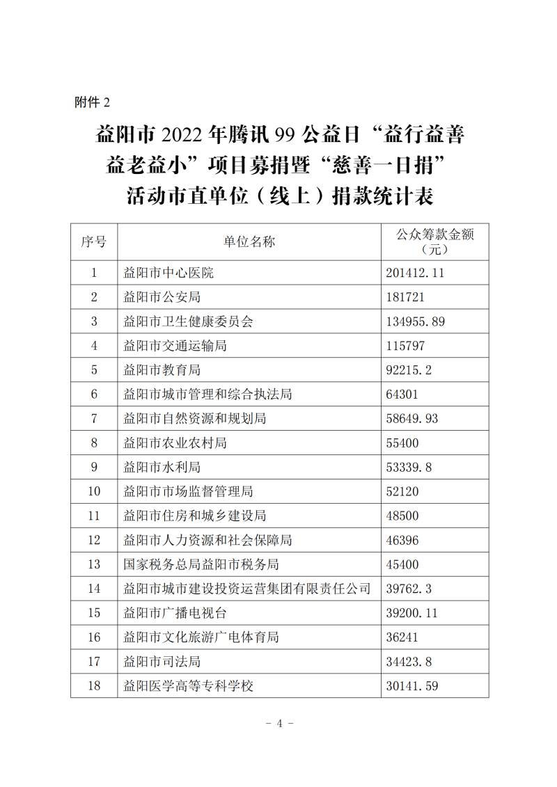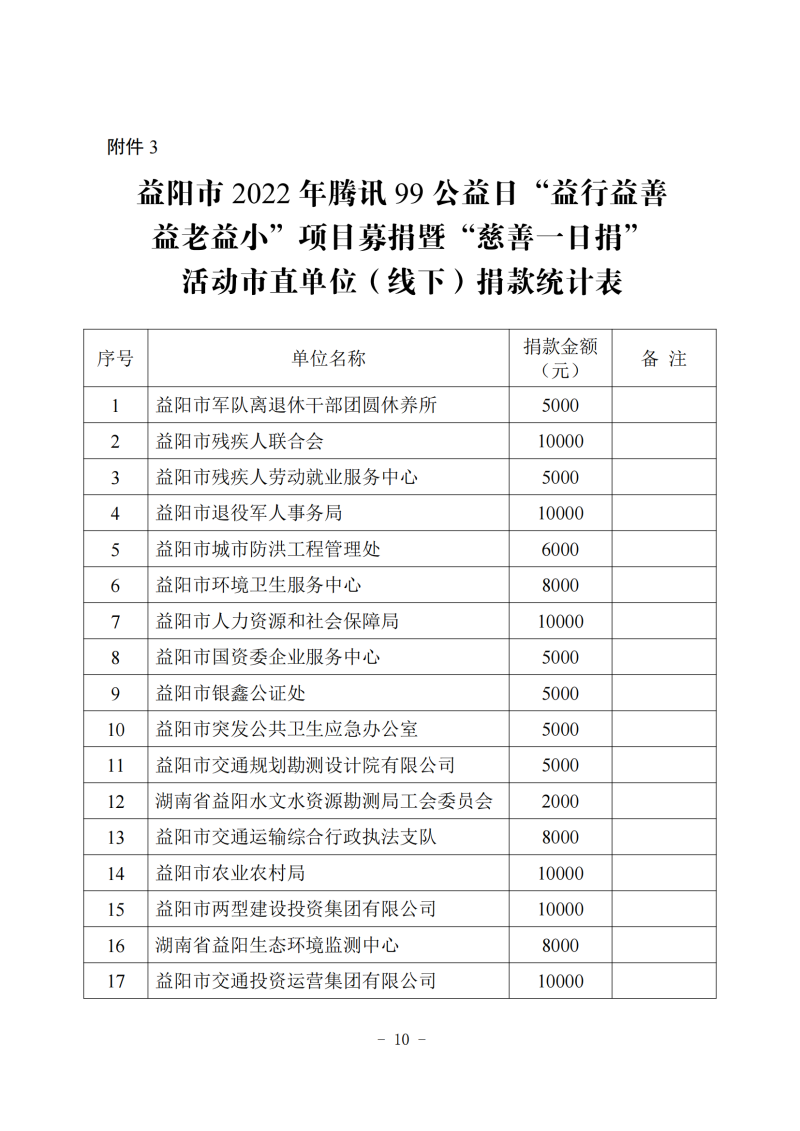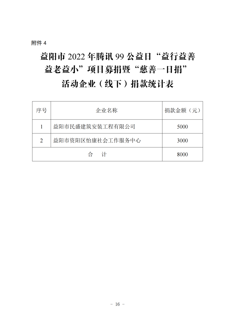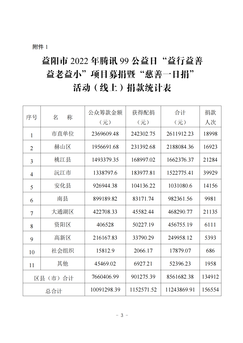 益阳市2022年腾讯99公益日“益行益善 益老益小”项目募捐暨“慈善一日捐”活动情况公示(一)