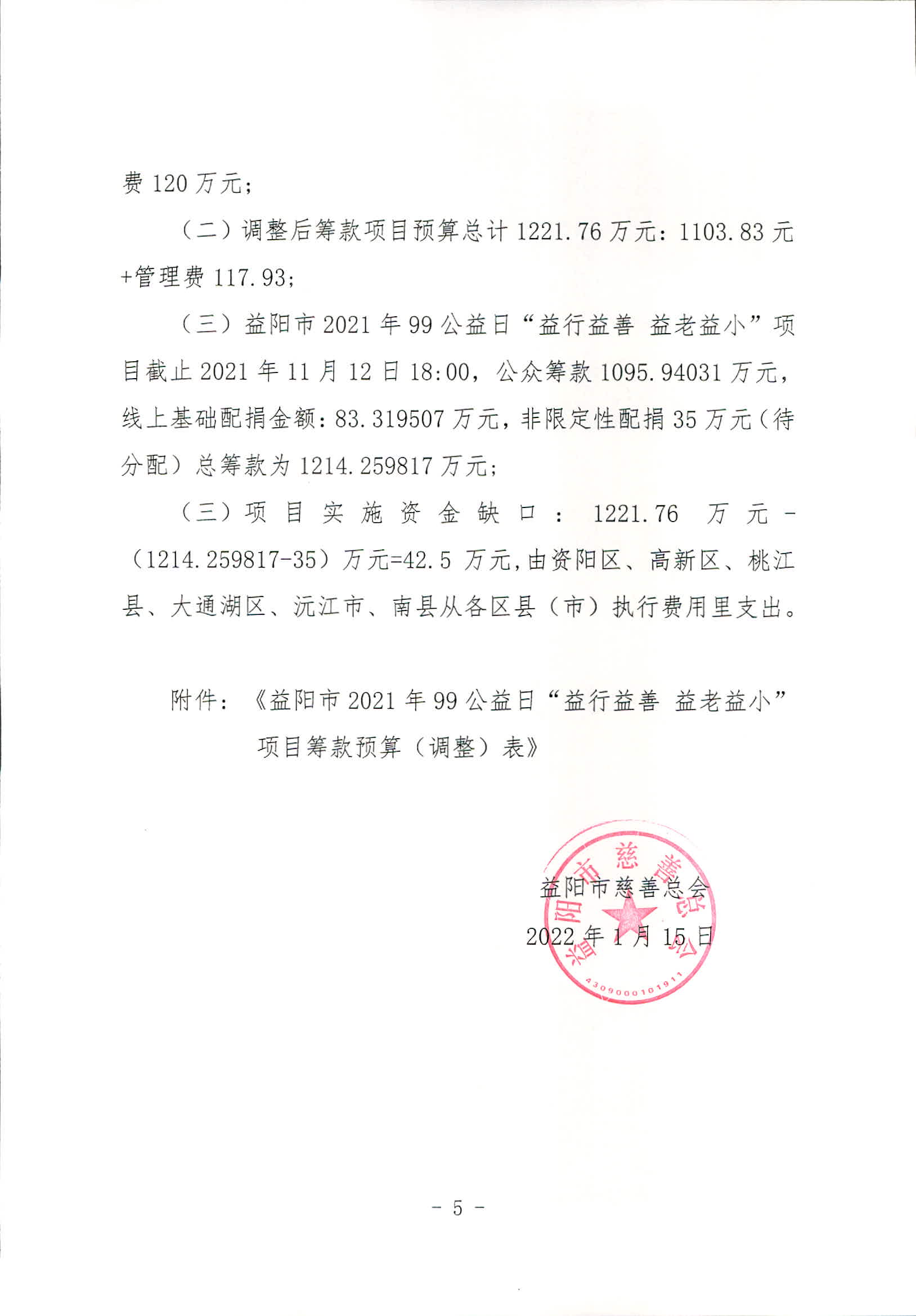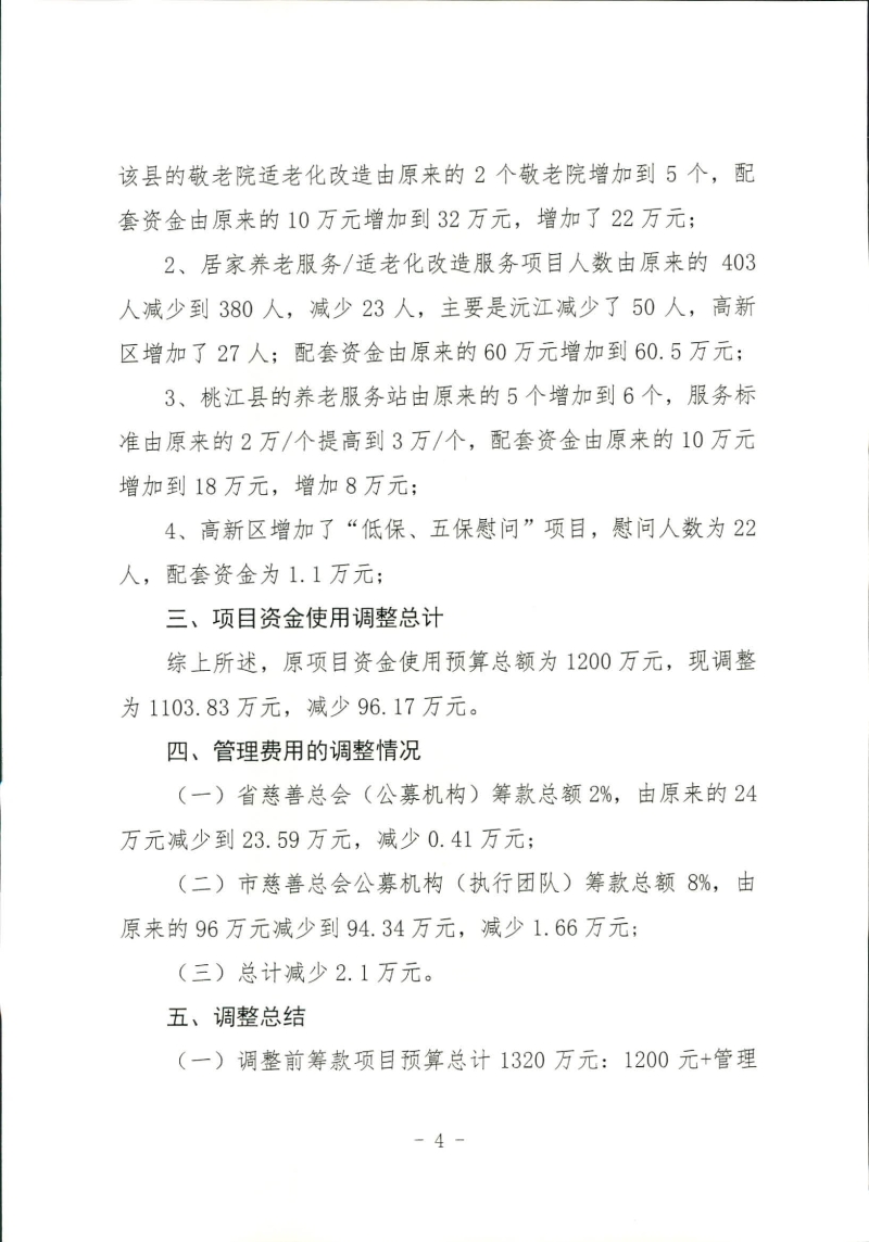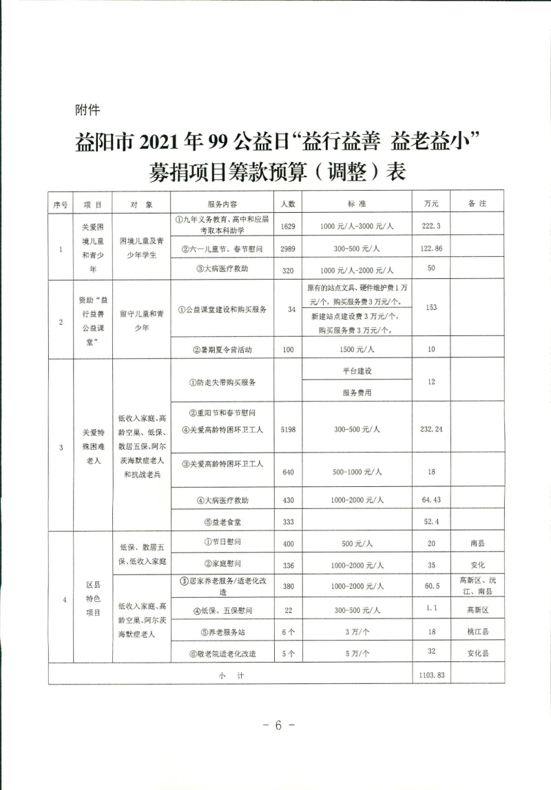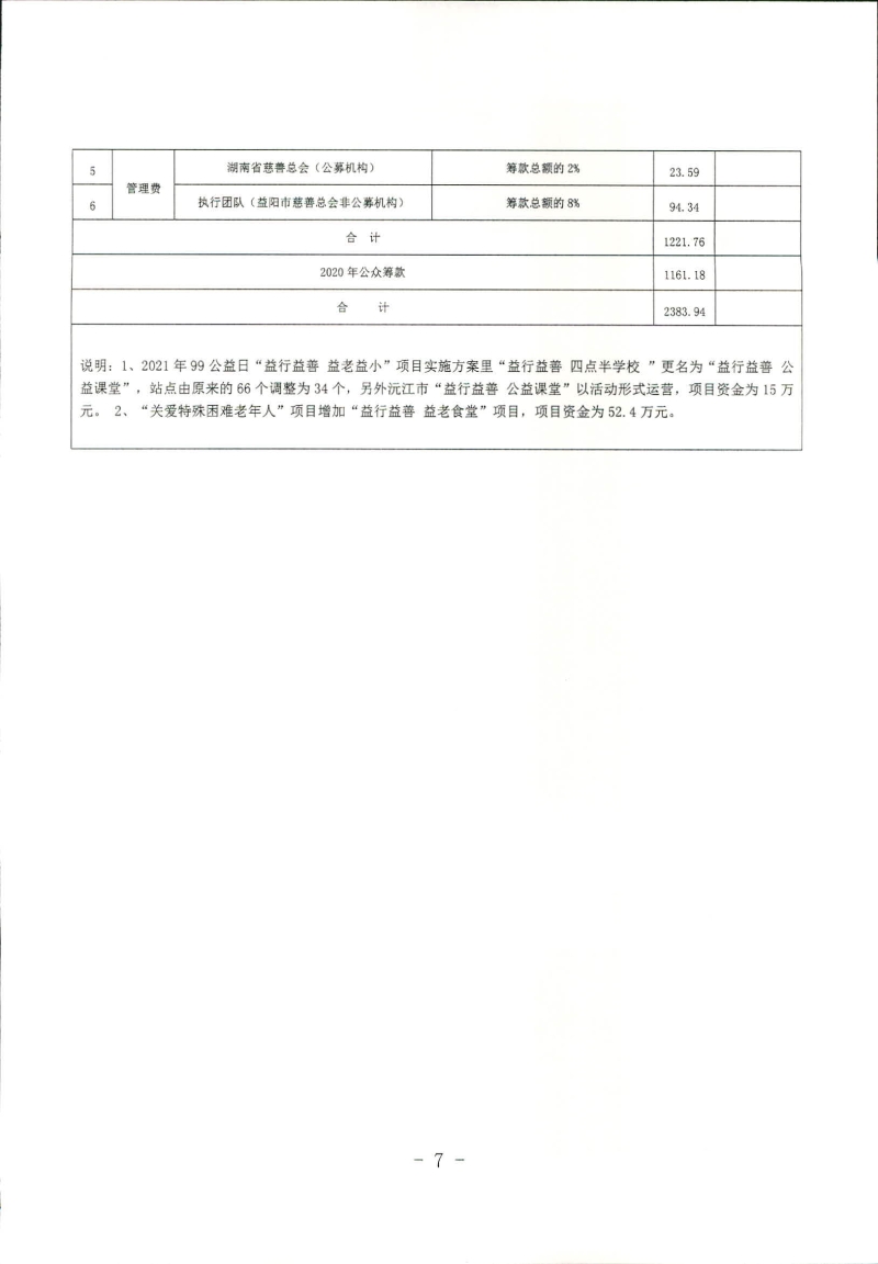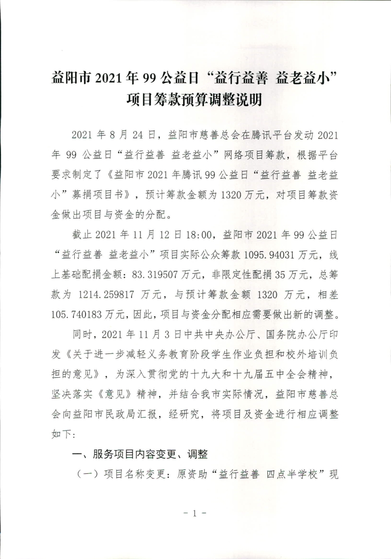 益阳市2021年99公益日“益行益善 益老益小”项目筹款预算调整说明
