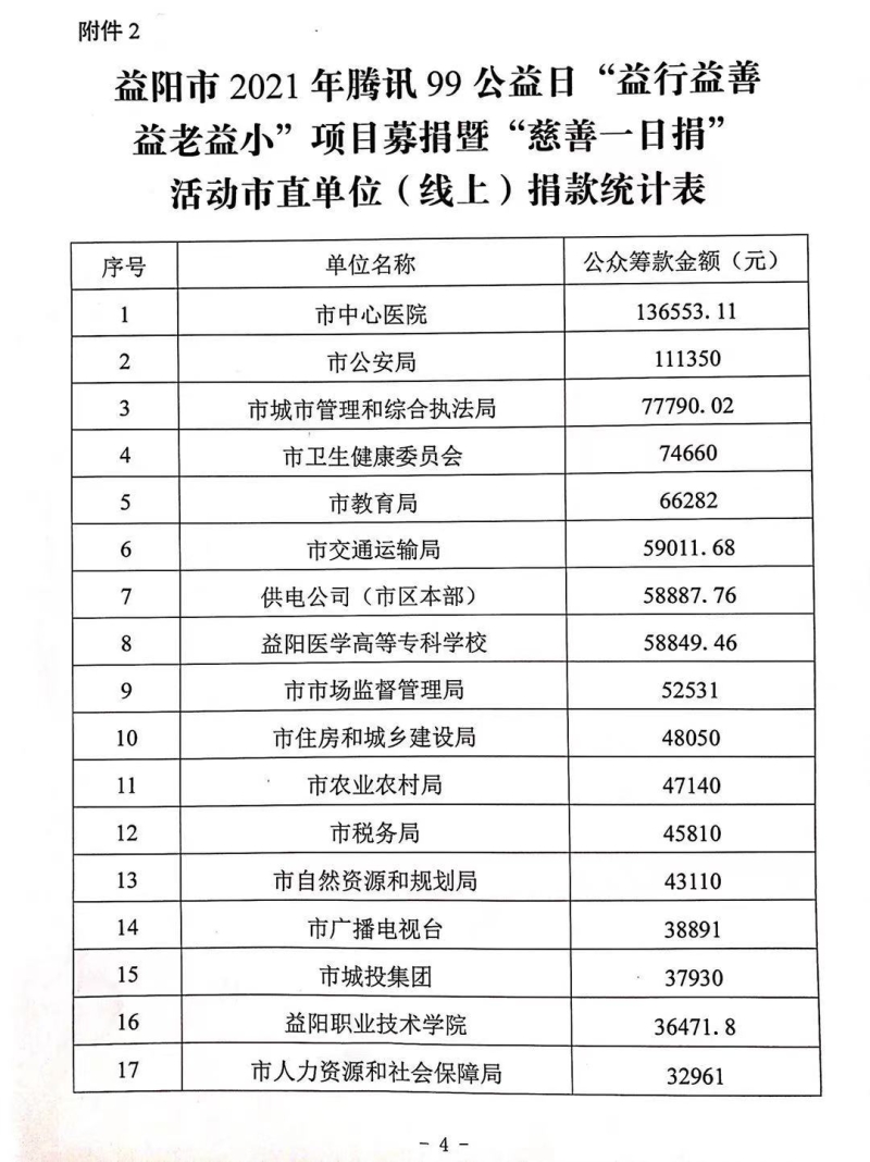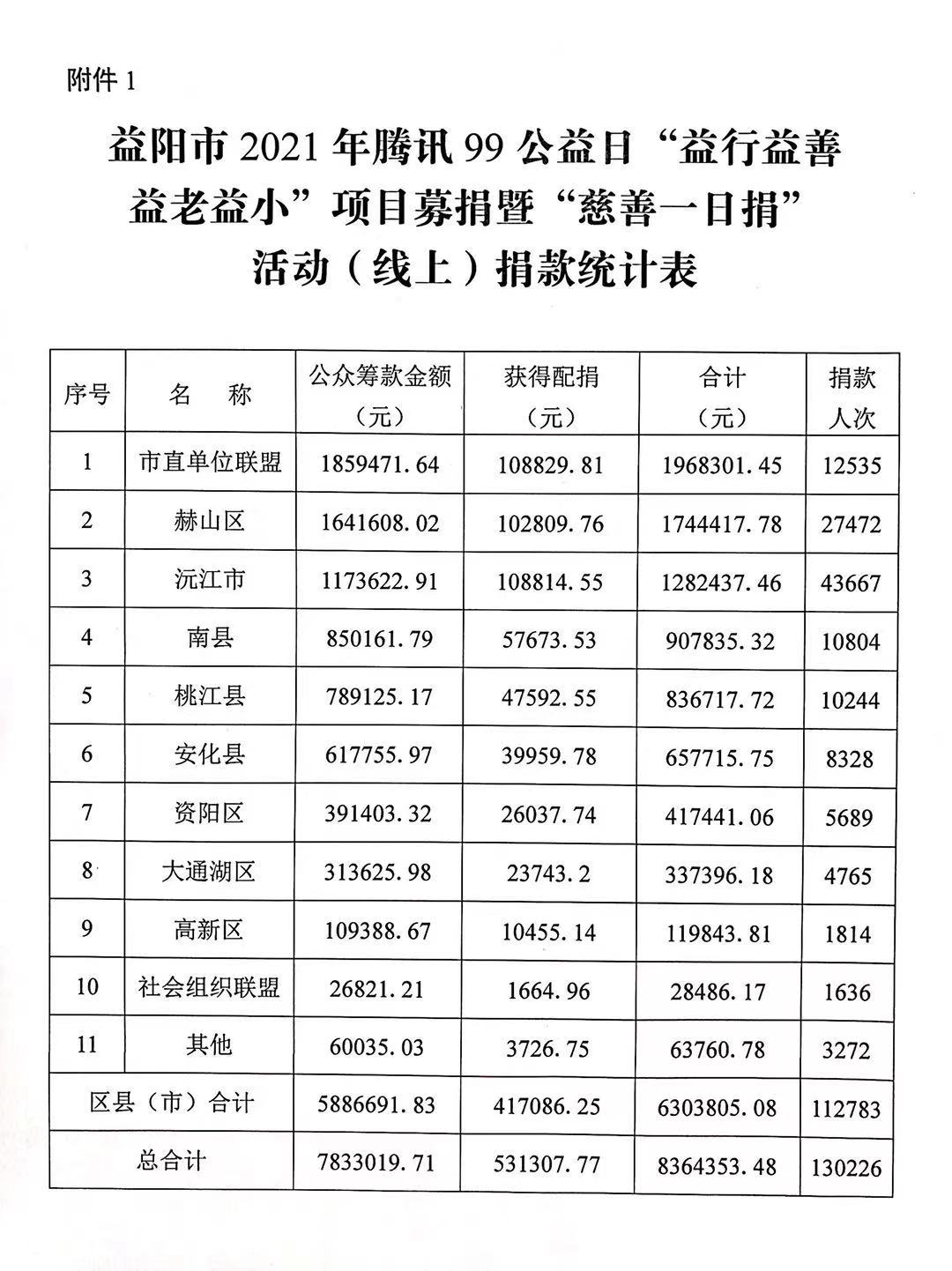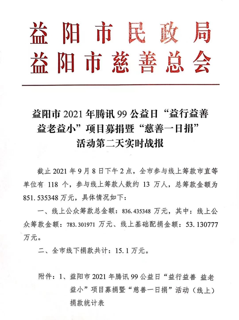 益阳市2021年腾讯99公益日“益行益善 益老益小”项目募捐暨“慈善一日捐”活动第二天实时战报