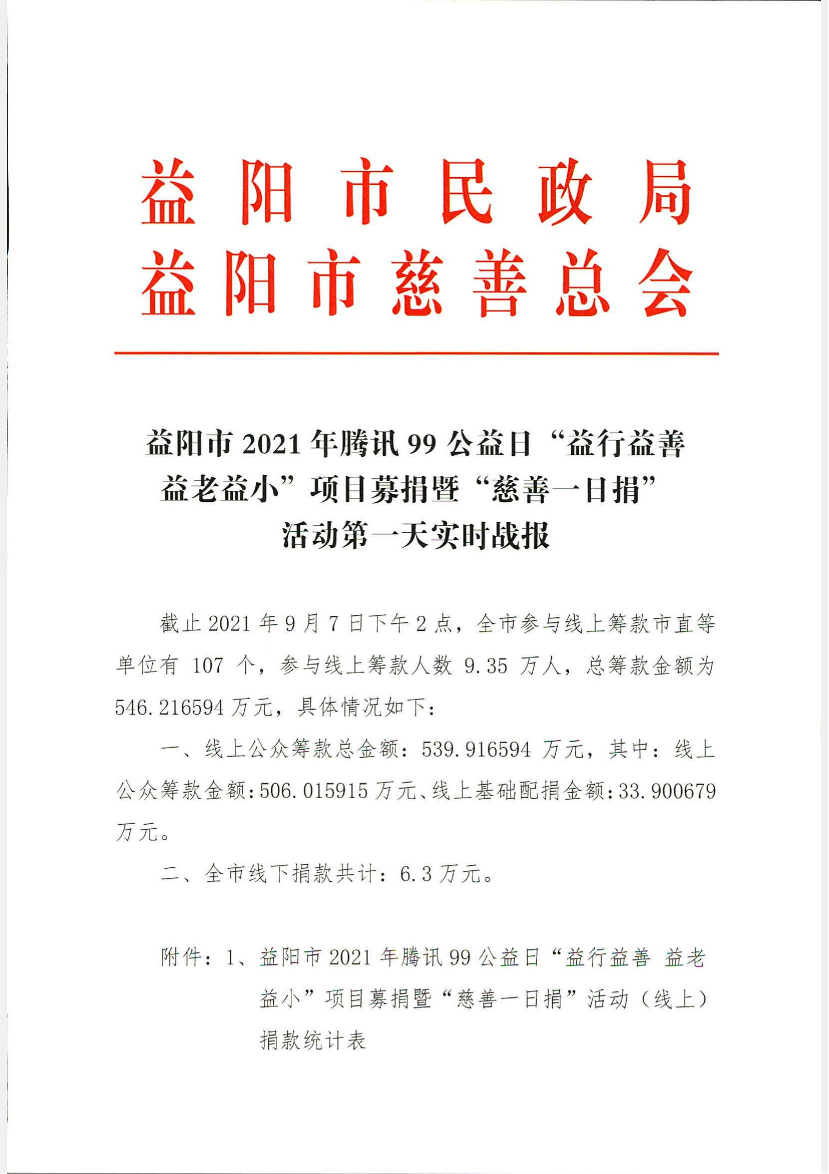 益阳市2021年腾讯99公益日“益行益善 益老益小”项目募捐暨“慈善一日捐”活动第一天实时战报