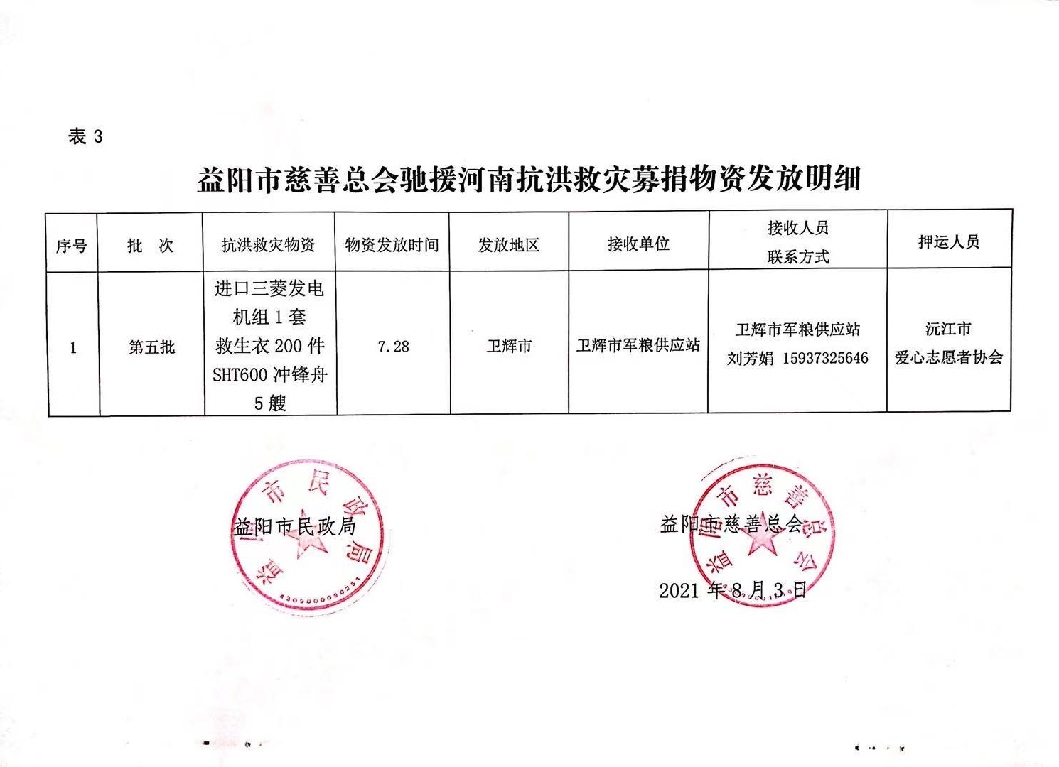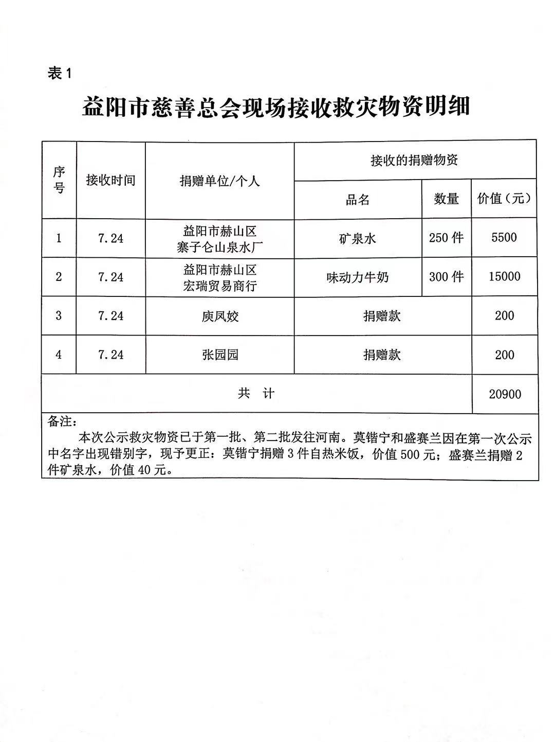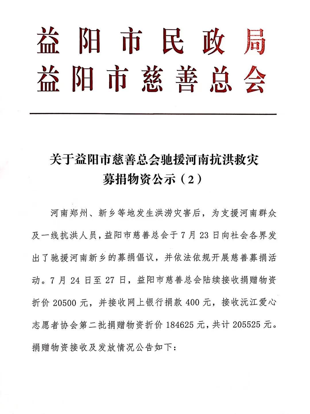 关于益阳市慈善总会驰援河南抗洪救灾 募捐物资公示(2)